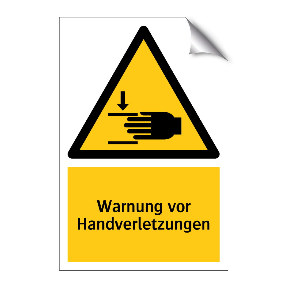 Warnschild mit dem Text Warnung vor Handverletzungen