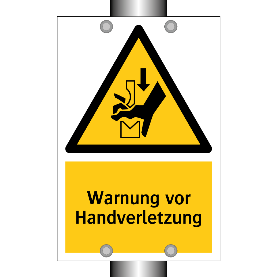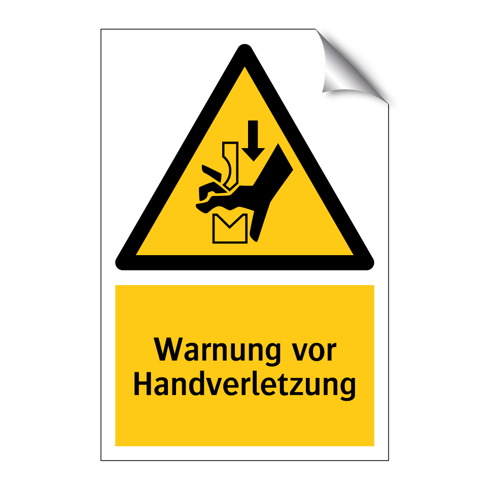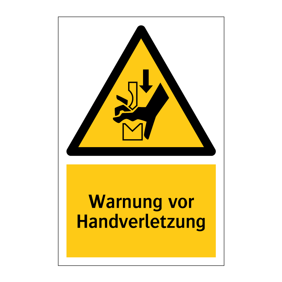 Warnschild mit dem Text Warnung vor Handverletzung