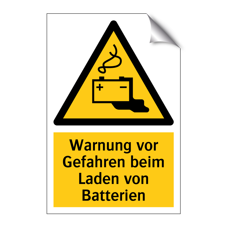 Warnschild mit dem Text Warnung vor Gefahren beim Laden von Batterien