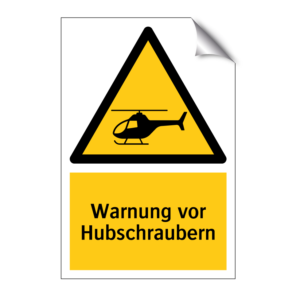 Warnschild mit dem Text Warnung vor Hubschraubern