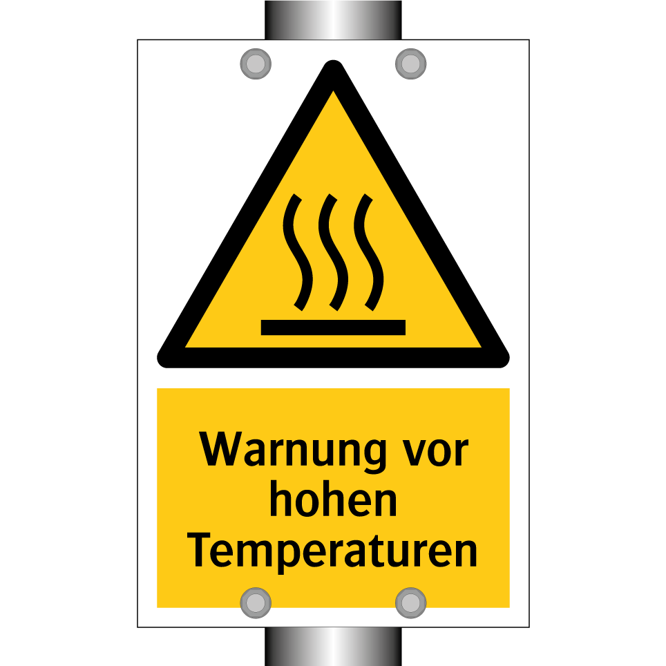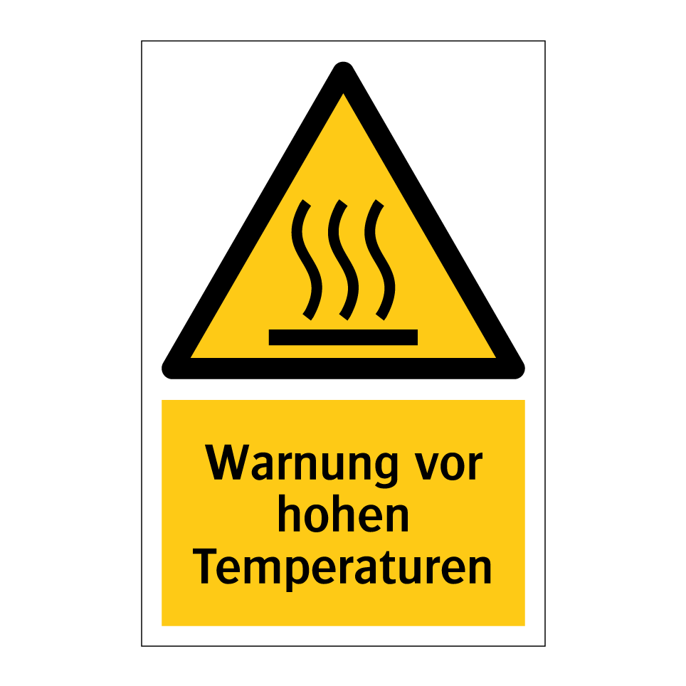Warnschild mit dem Text Warnung vor hohen Temperaturen