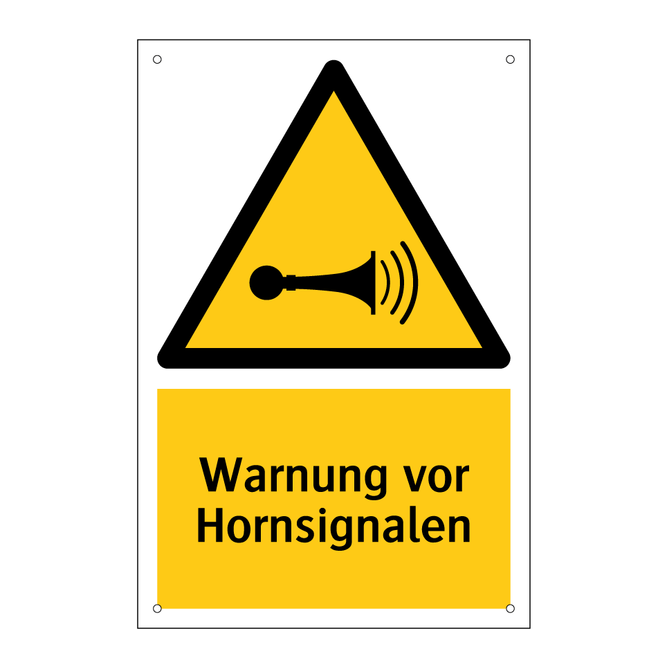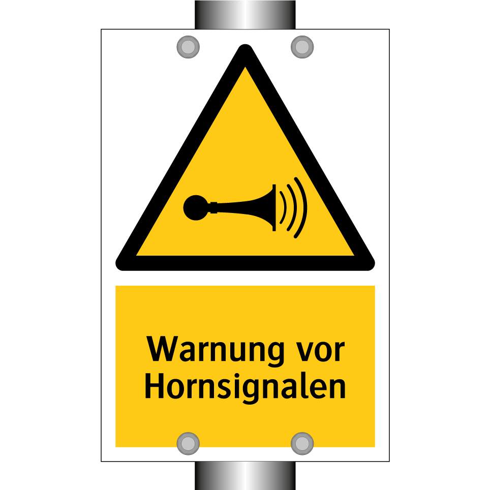 Warnschild mit dem Text Warnung vor Hornsignalen