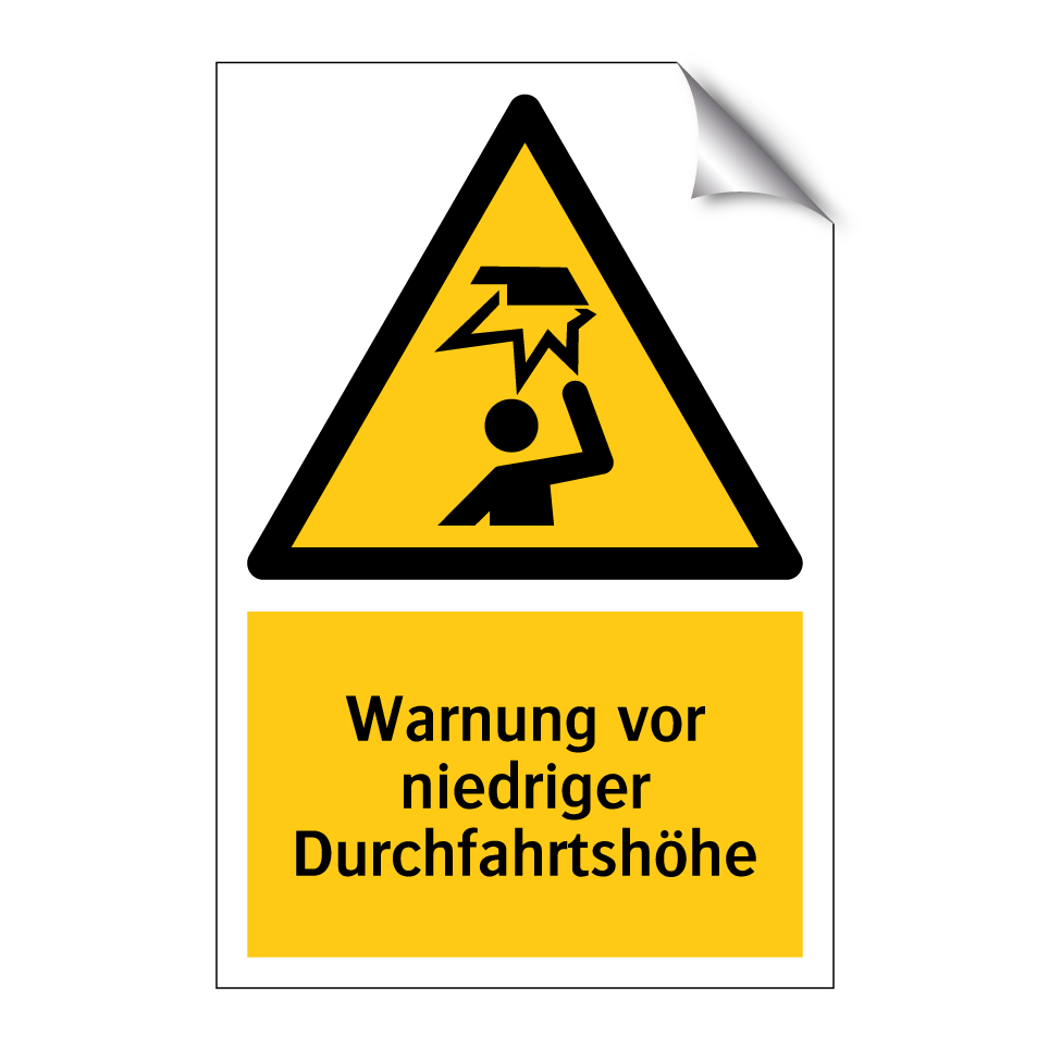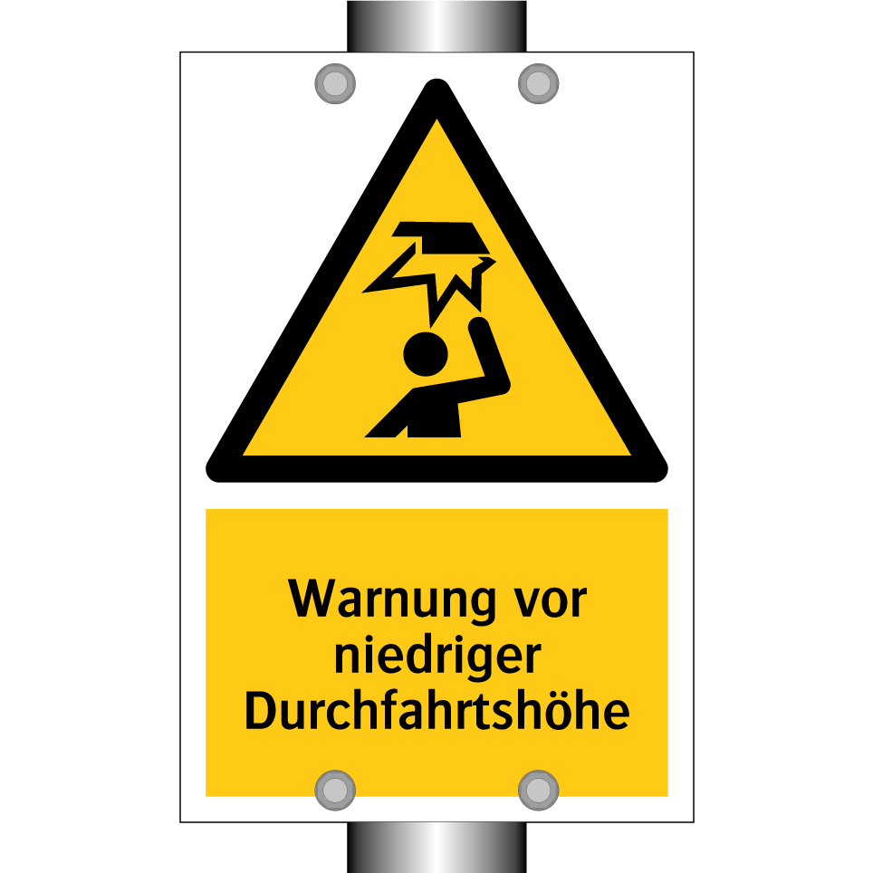 Warnschild mit dem Text Warnung vor niedriger Durchfahrtshöhe