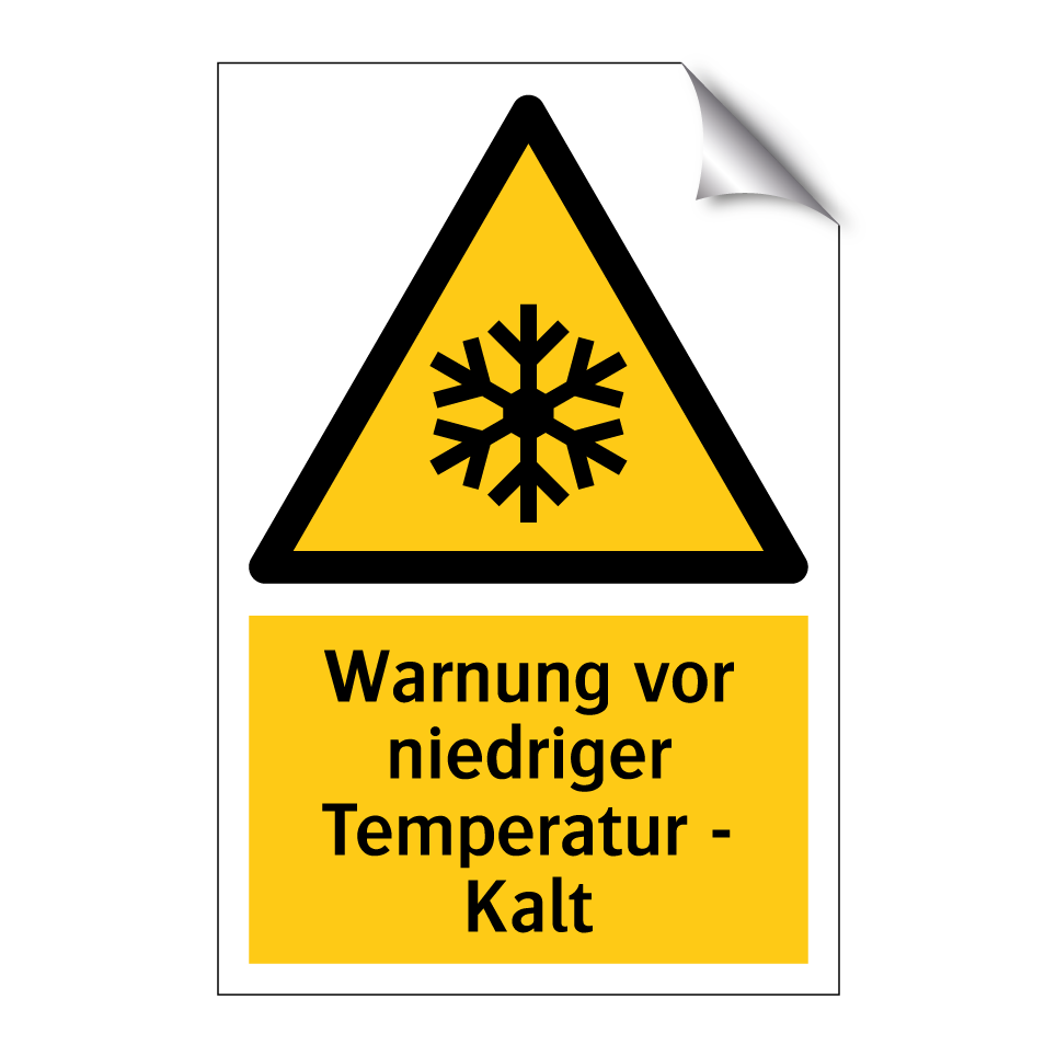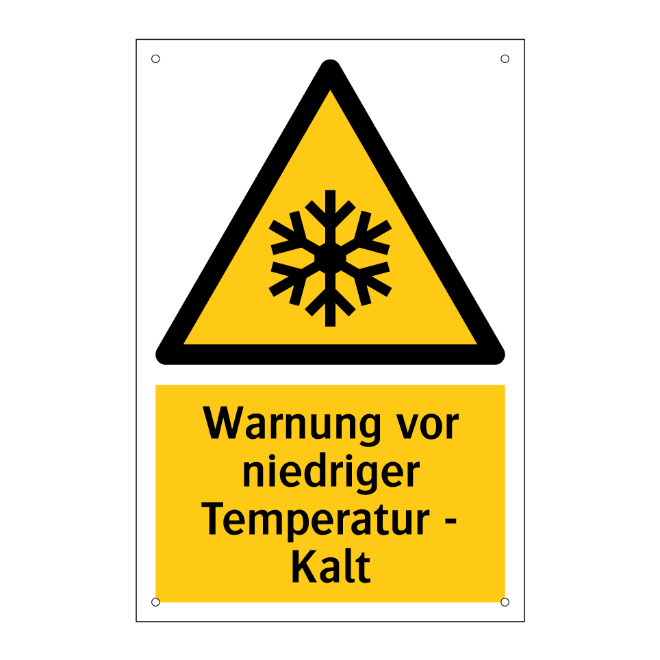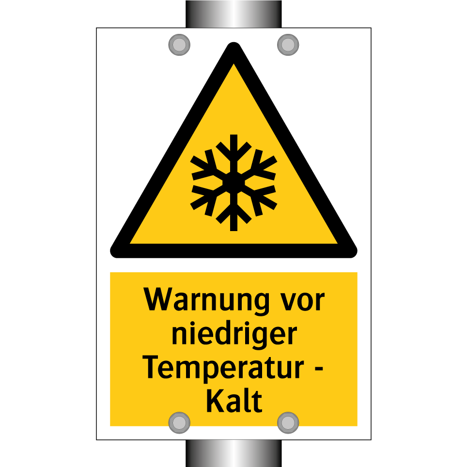 Warnschild mit dem Text Warnung vor niedriger Temperatur - Kalt