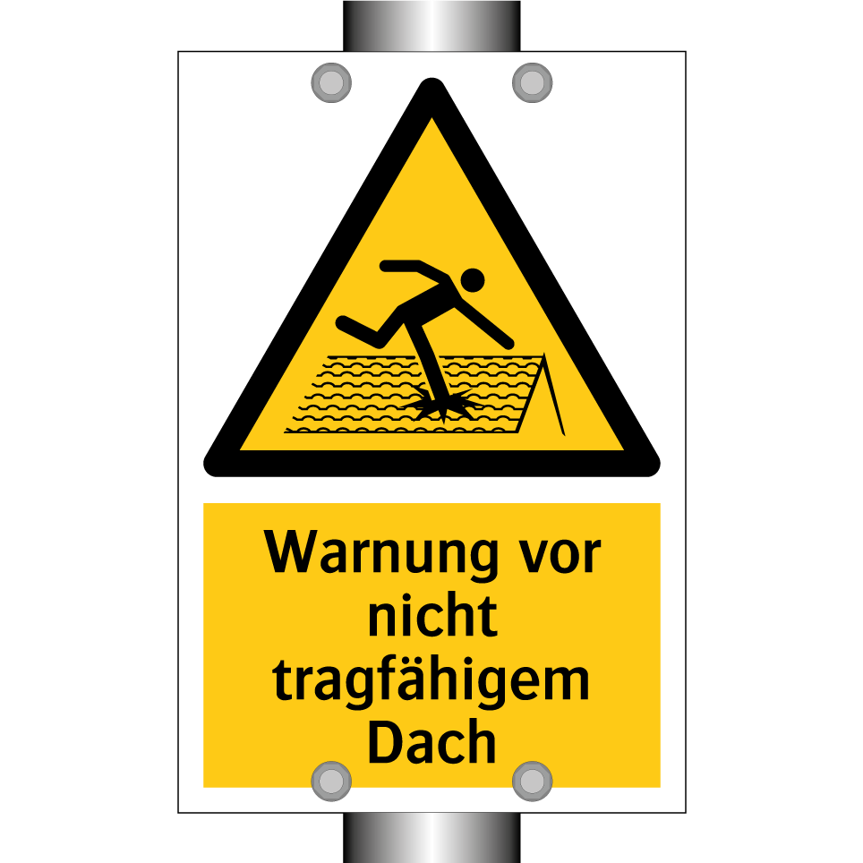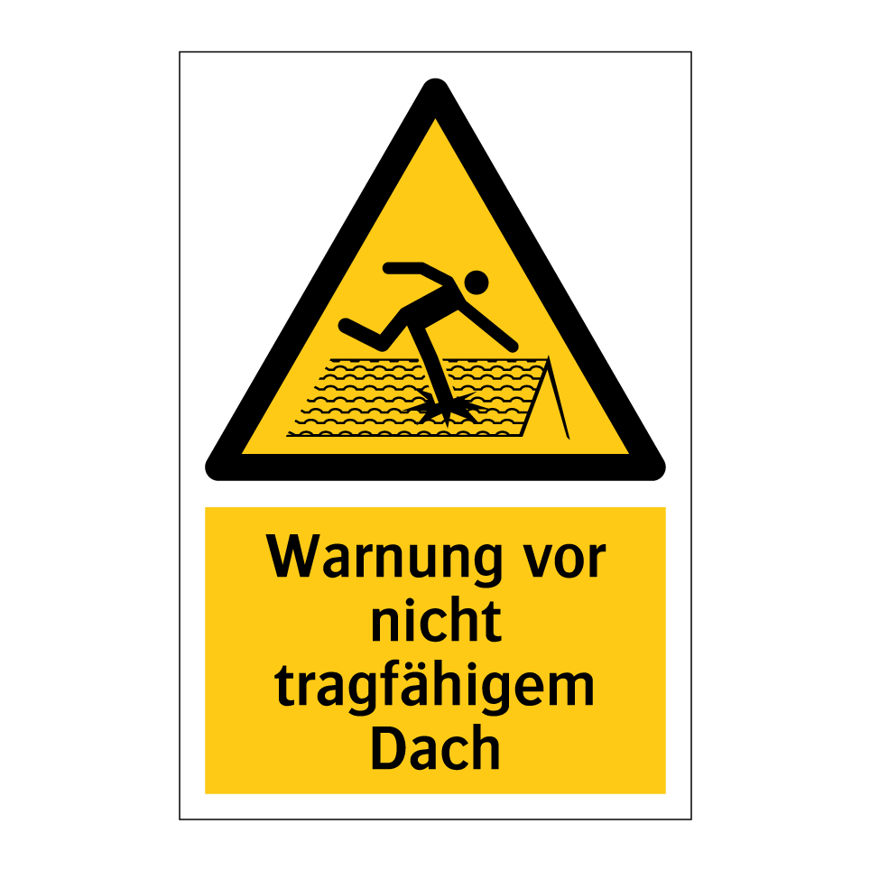 Warnschild mit dem Text Warnung vor nicht tragfähigem Dach