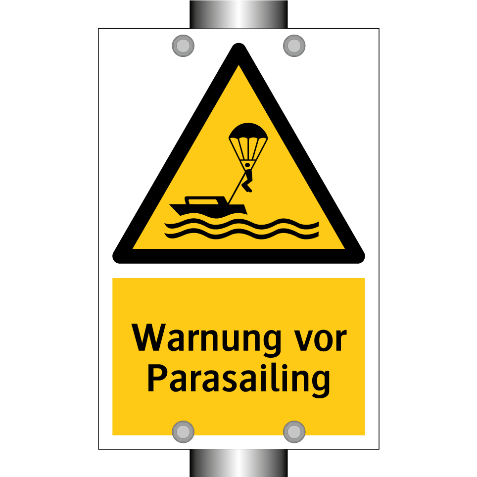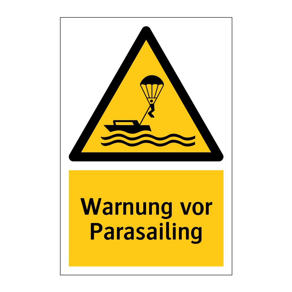 Warnschild mit dem Text Warnung vor Parasailing