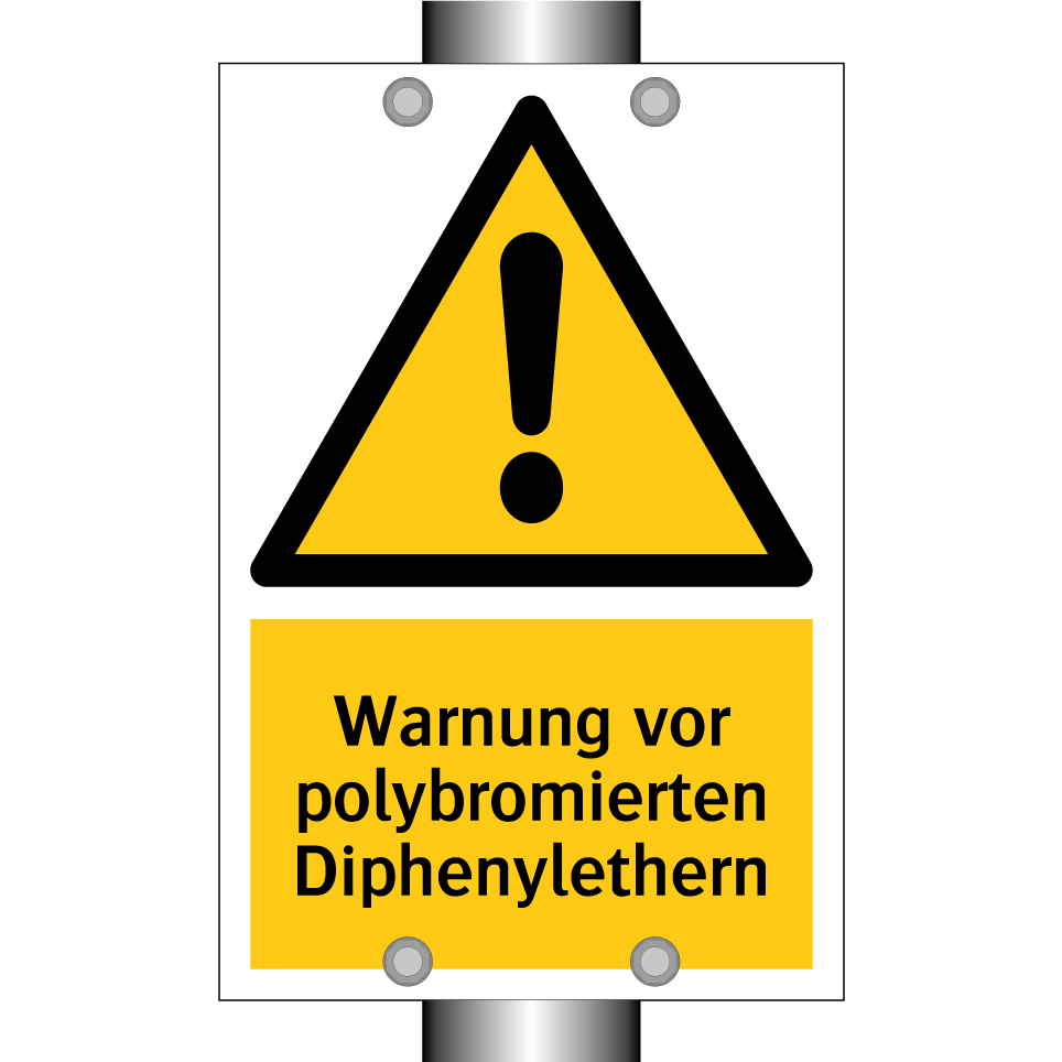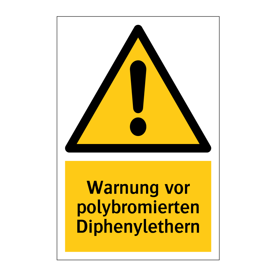 Warnschild mit dem Text Warnung vor polybromierten Diphenylethern