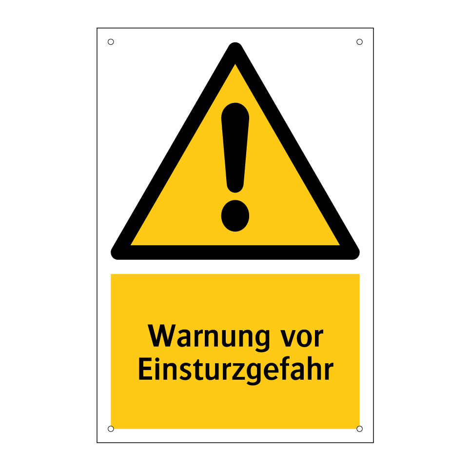 Diese Warnschild ist ein unverzichtbares Element für die Sicherheit in gefährdeten Bereichen. Es signalisiert deutlich die Gefahr eines möglichen Einsturzes und ist ideal für Baustellen, Lagerhallen oder andere Orte, an denen strukturelle Instabilität ein Risiko darstellt. Die auffällige gelbe Hintergrundfarbe und die schwarze Schrift sorgen dafür, dass die Warnung sofort ins Auge fällt. Platzieren Sie dieses Warnschild an Eingängen, Zäunen oder in der Nähe von potenziell gefährlichen Zonen, um Mitarbeiter und Besucher effektiv zu warnen. Durch die Verwendung von Warnschildern wie diesem können Unfälle vermieden und die Sicherheit erhöht werden.