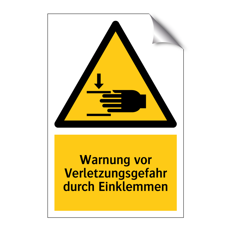 Warnschild mit dem Text Warnung vor Verletzungsgefahr durch Einklemmen