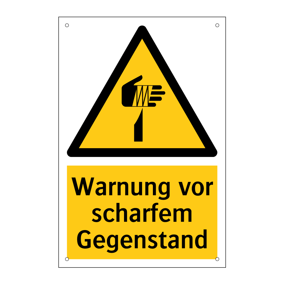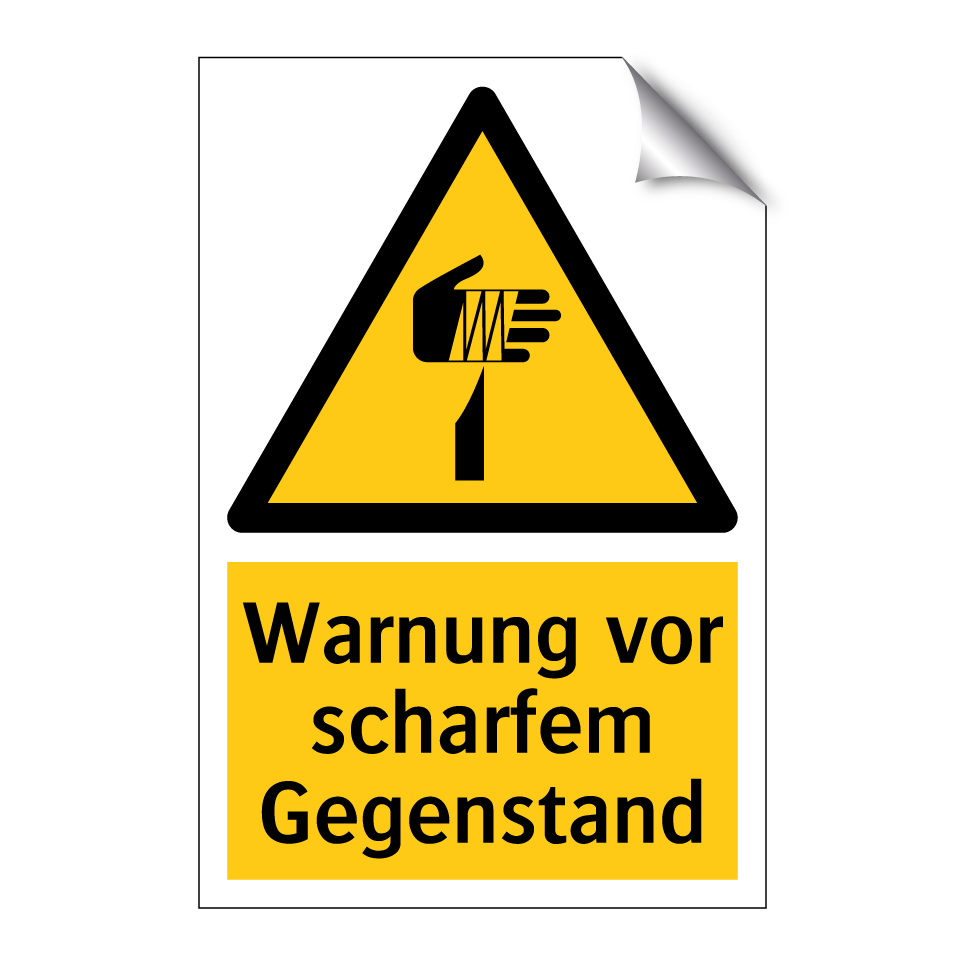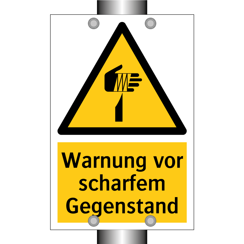 Warnschild mit dem Text Warnung vor scharfem Gegenstand