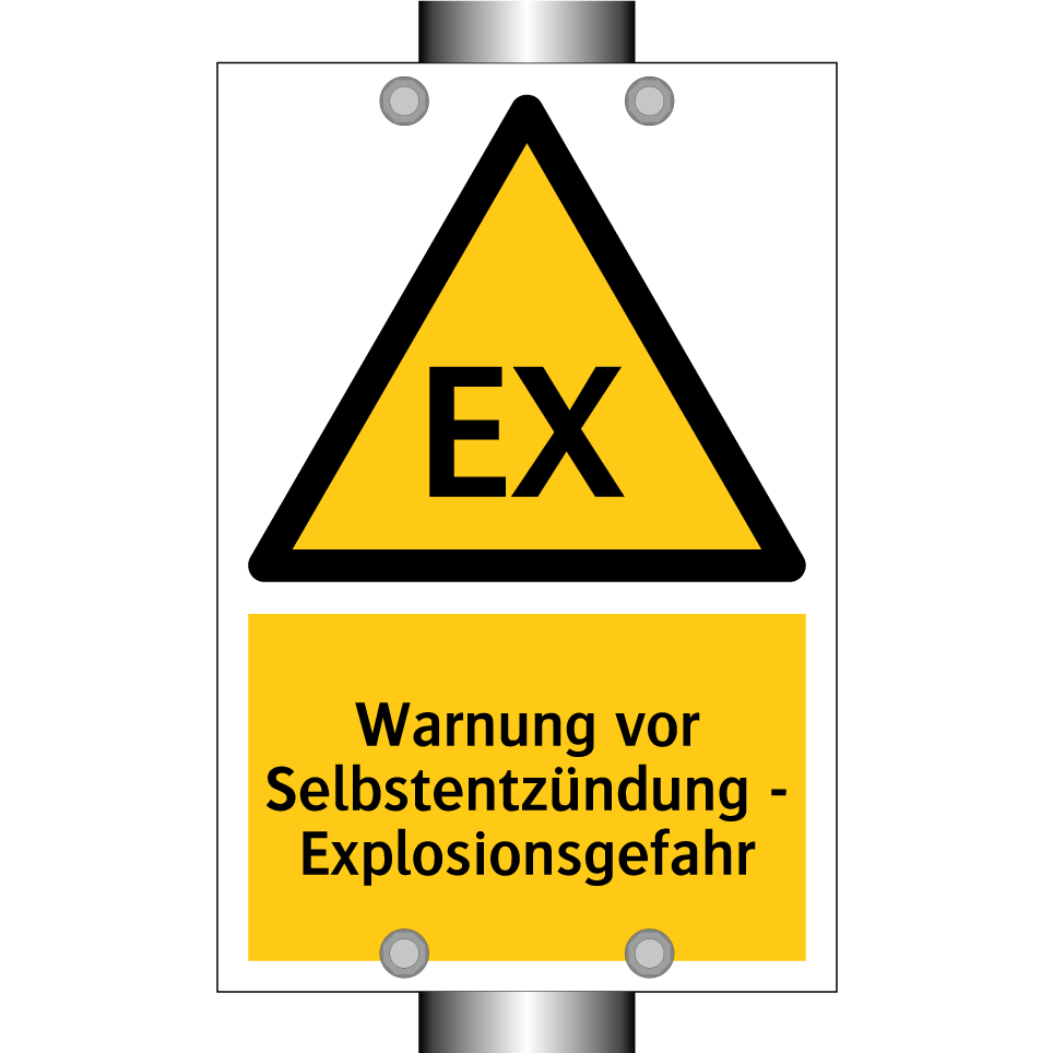 Warnschild mit dem Text Warnung vor Selbstentzündung - Explosionsgefahr