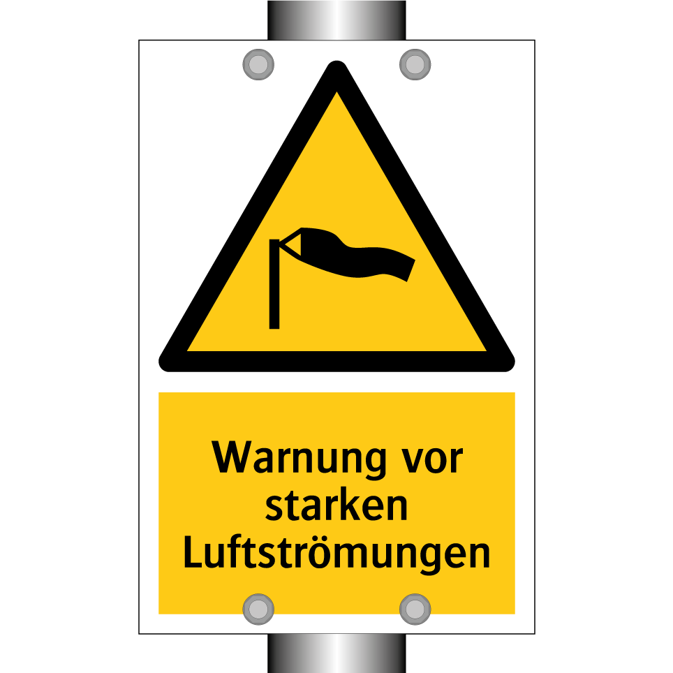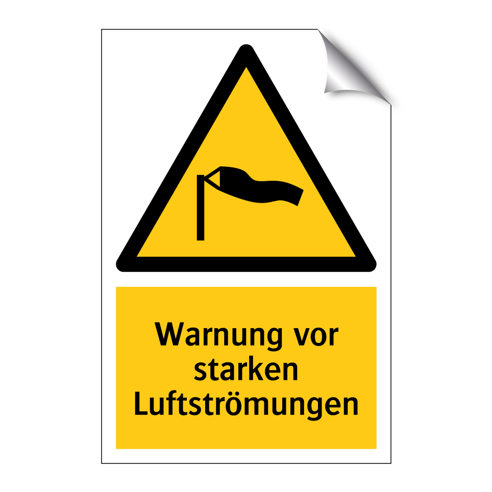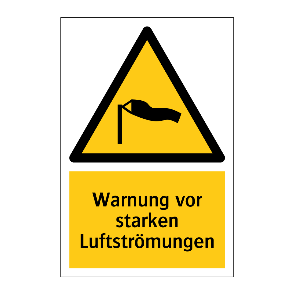 Warnschild mit dem Text Warnung vor starken Luftströmungen