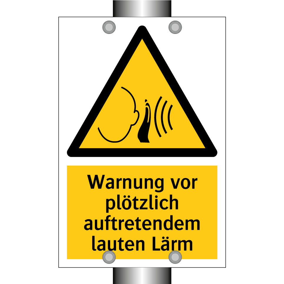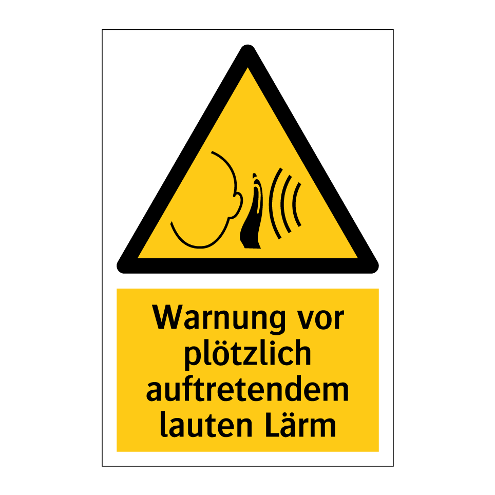 Warnschild mit dem Text Warnung vor plötzlich auftretendem lauten Lärm