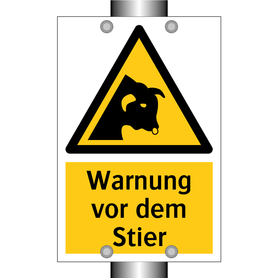 Warnschild mit dem Text Warnung vor dem Stier