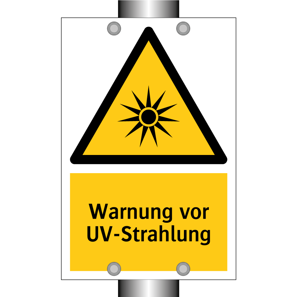 Warnschild mit dem Text Warnung vor UV-Strahlung