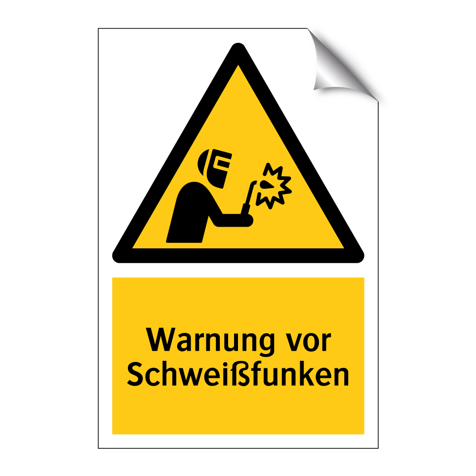 Warnschild mit dem Text Warnung vor Schweißfunken
