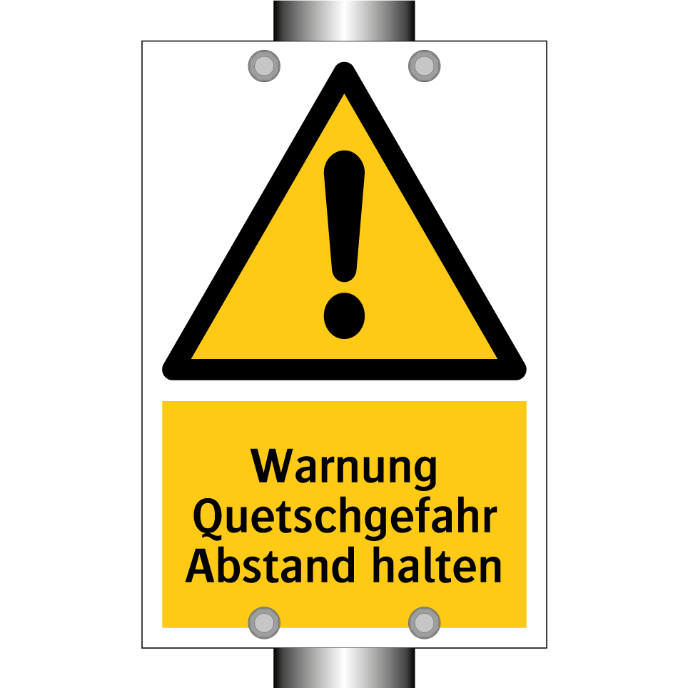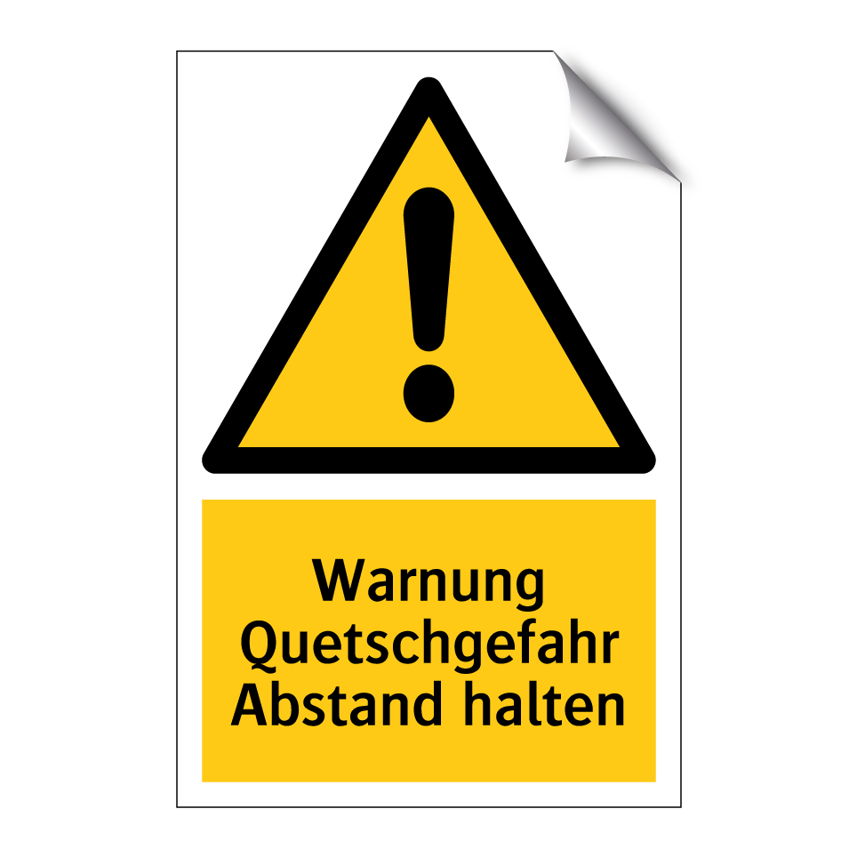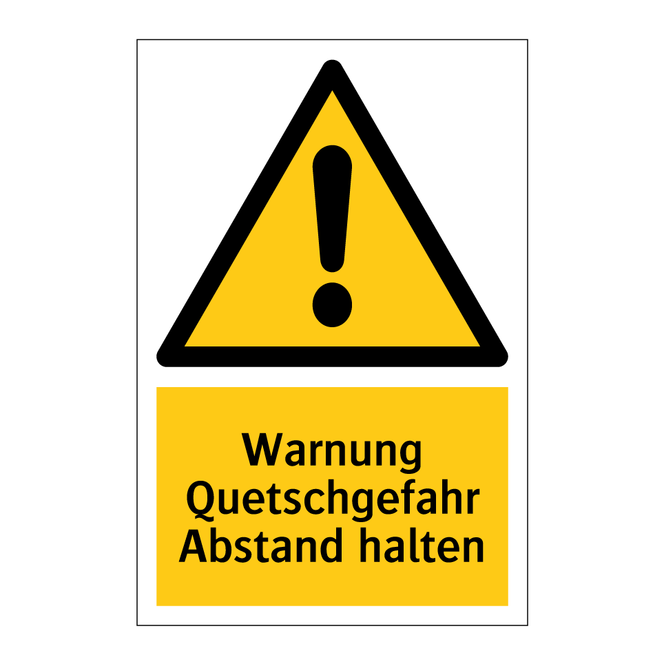 Warnschild mit dem Text Warnung Quetschgefahr Abstand halten
