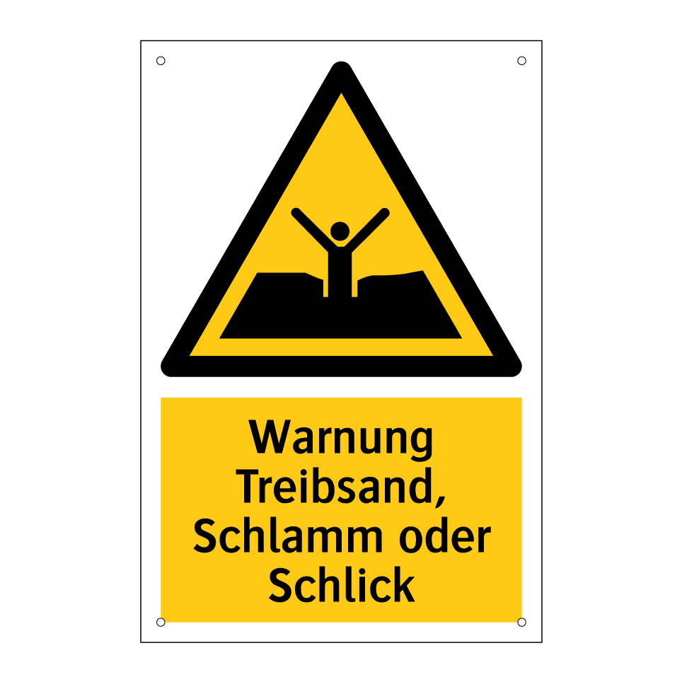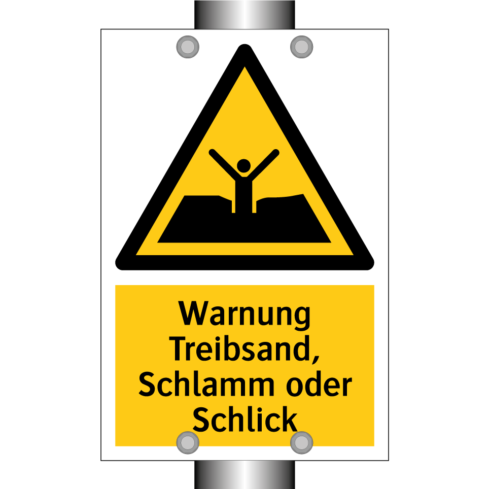 Warnschild mit dem Text Warnung Treibsand, Schlamm oder Schlick
