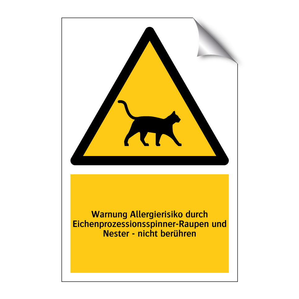 Diese auffällige Warnschild ist ideal, um auf das Risiko von Allergien durch Eichenprozessionsspinner-Raupen und deren Nester hinzuweisen. Mit ihrer leuchtend gelben Hintergrundfarbe und der klaren Symbolik zieht sie sofort die Aufmerksamkeit auf sich und warnt effektiv vor potenziellen Gefahren. Diese Warnschilder sind besonders geeignet für den Einsatz in Parks, Wäldern oder anderen Grünflächen, wo diese Raupen häufig vorkommen. Sie können an Bäumen, Zäunen oder Informationstafeln angebracht werden, um Besucher und Passanten zu informieren und zu schützen. Durch die prägnante Botschaft wird das Bewusstsein für die Risiken geschärft und die Sicherheit erhöht.