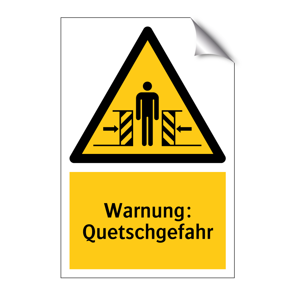Warnschild mit dem Text Warnung: Quetschgefahr