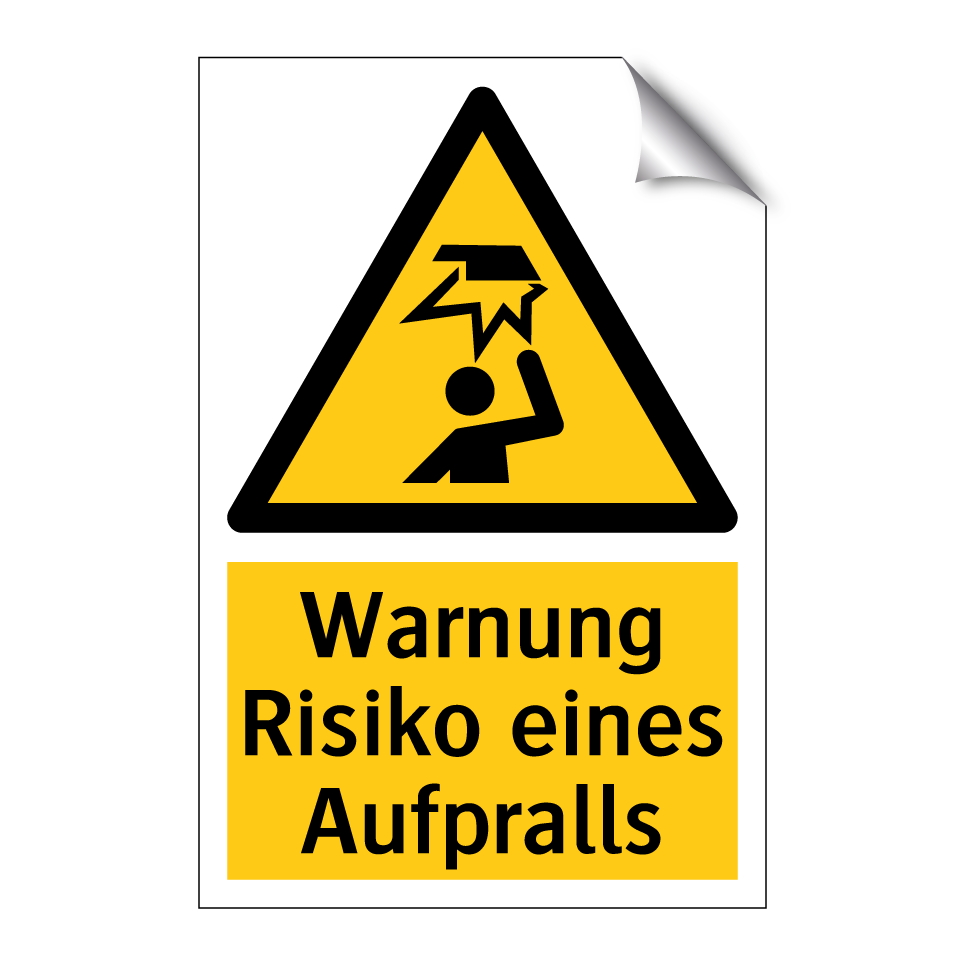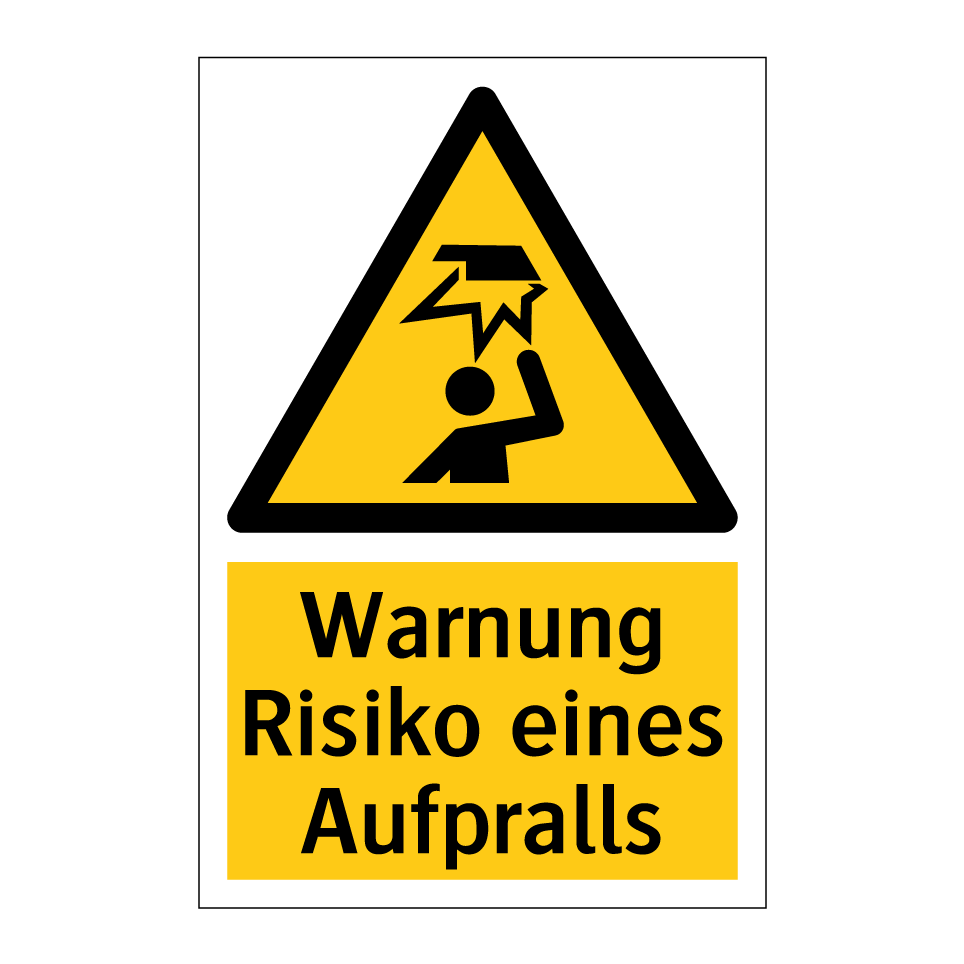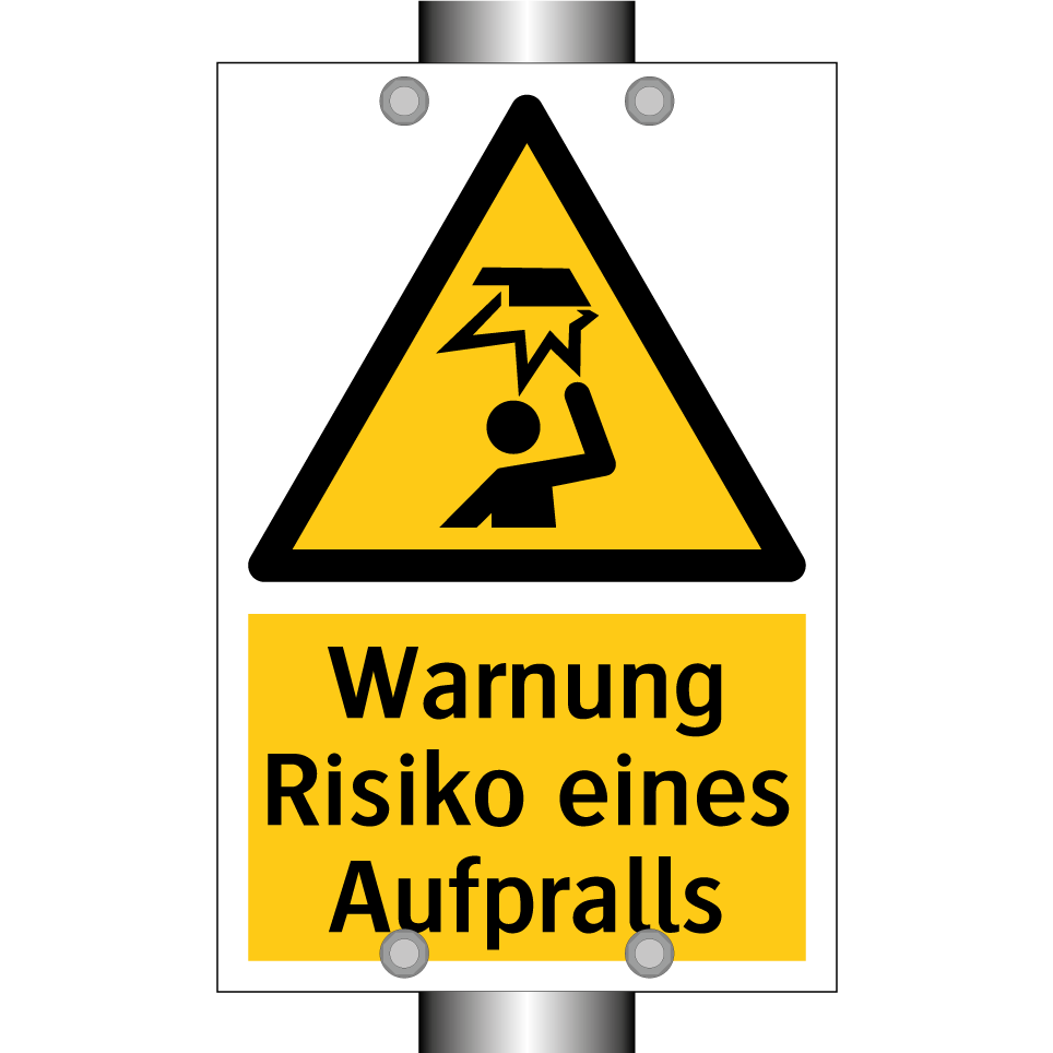 Warnschild mit dem Text Warnung Risiko eines Aufpralls