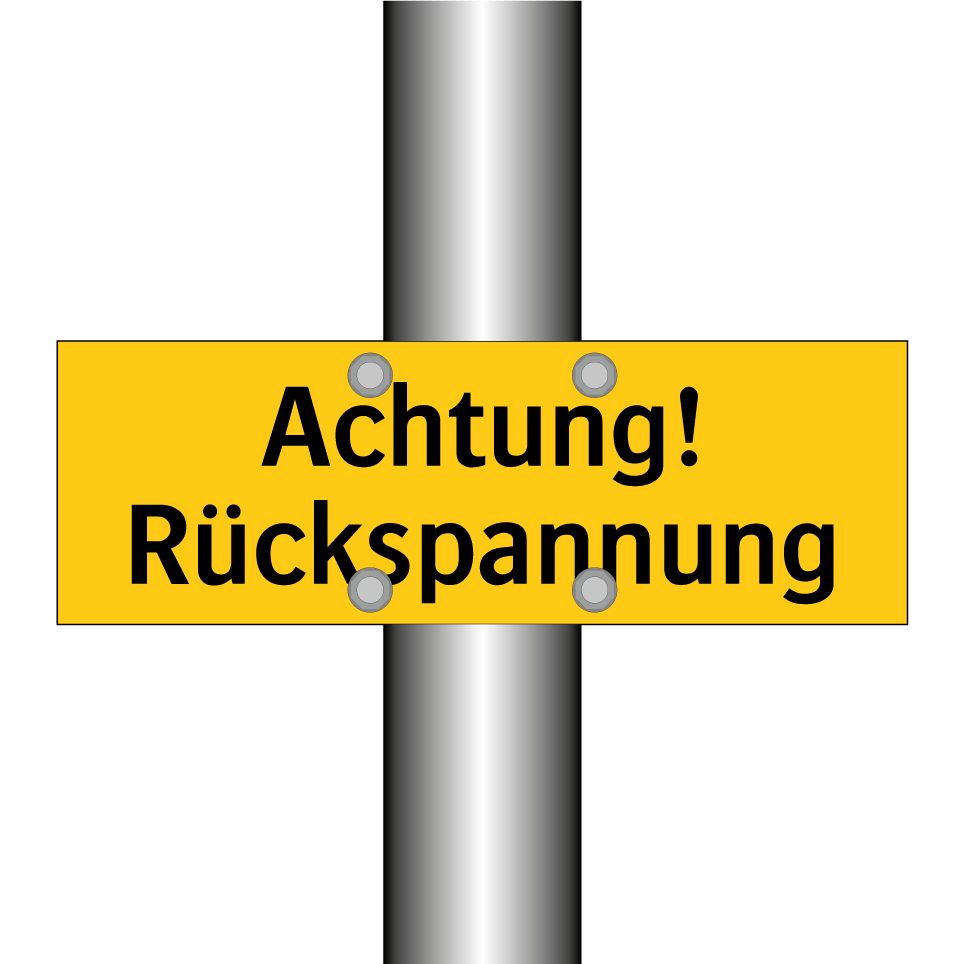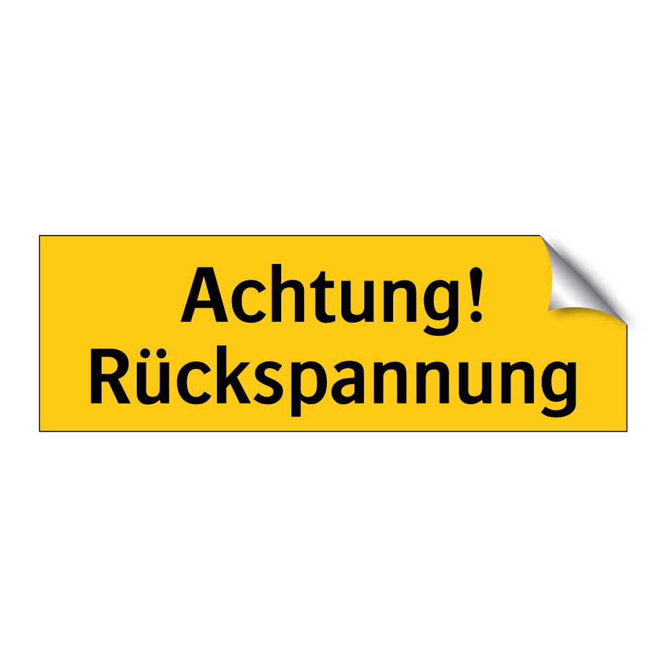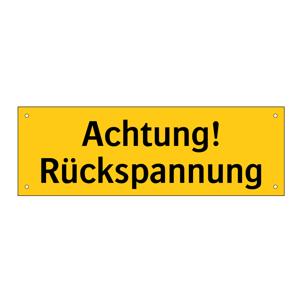 Warnschild mit dem Text Achtung! Rückspannung