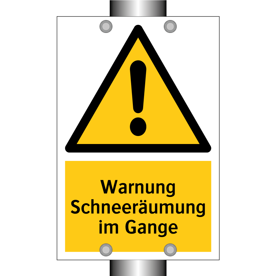 Warnschild mit dem Text Warnung Schneeräumung im Gange