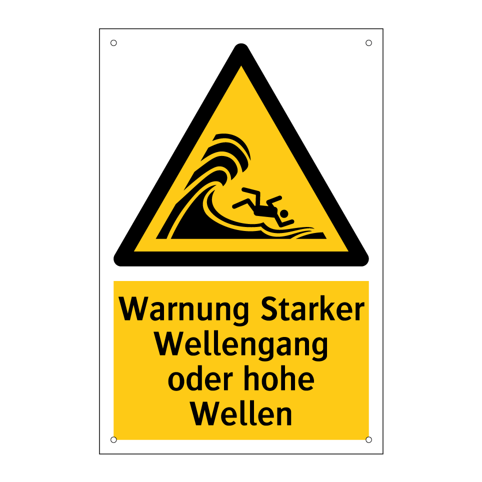 Diese auffällige Warnschild mit gelbem Hintergrund und schwarzem Text ist ideal, um auf gefährliche Bedingungen am Wasser hinzuweisen. Sie eignet sich perfekt für den Einsatz an Stränden, Häfen oder Küstengebieten, wo starker Wellengang oder hohe Wellen auftreten können. Die klare Symbolik und die prägnante Botschaft sorgen dafür, dass die Warnung nicht übersehen wird. Platzieren Sie das Warnschild an gut sichtbaren Stellen, um Besucher und Passanten effektiv zu informieren und zu schützen. Diese Warnschilder sind unverzichtbar für die Sicherheit in maritimen Umgebungen und tragen dazu bei, Unfälle zu vermeiden.