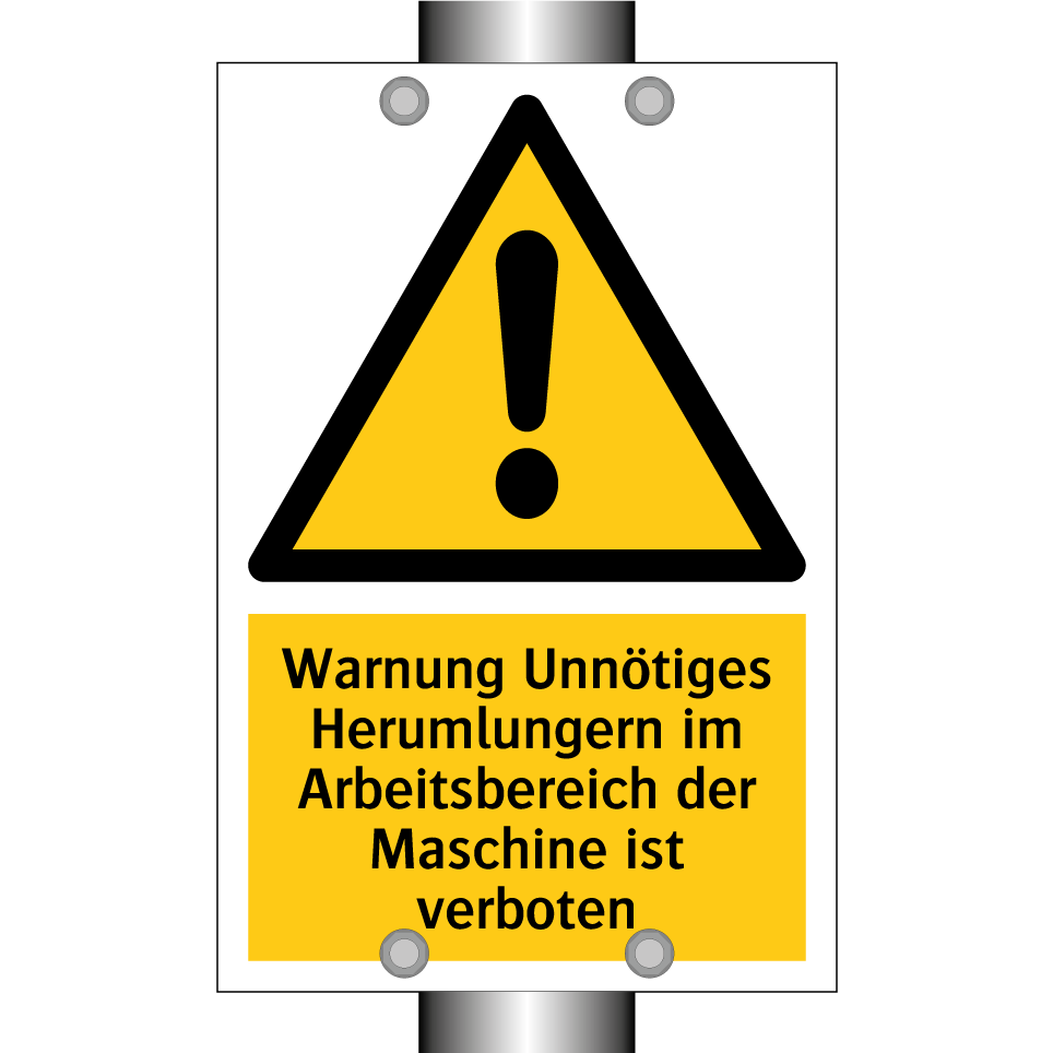 Warnschild mit dem Text Warnung Unnötiges Herumlungern im Arbeitsbereich der Maschine ist verboten