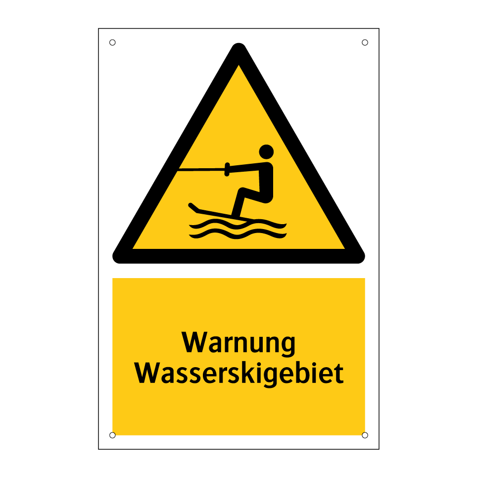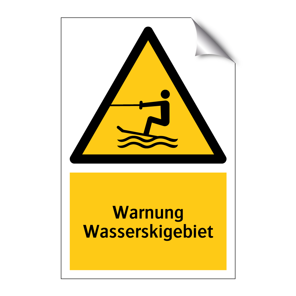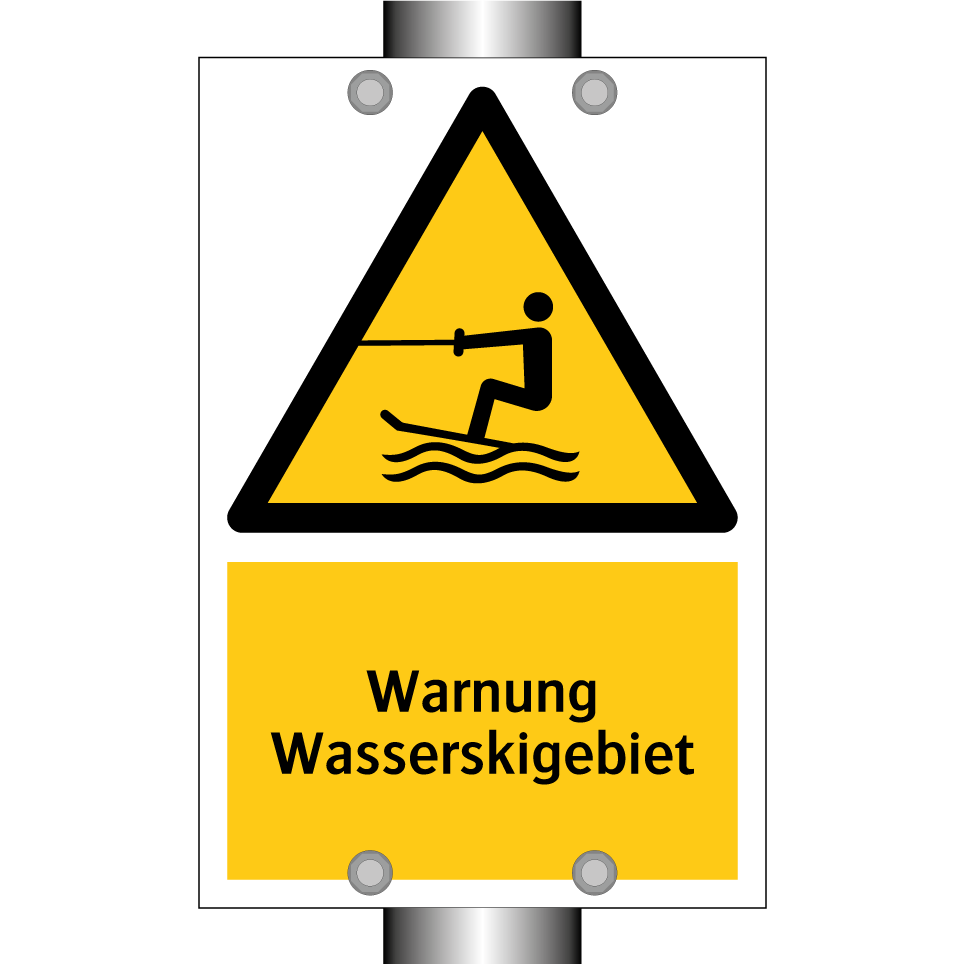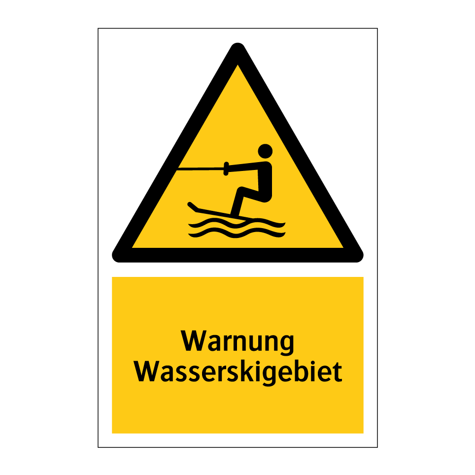 Warnschild mit dem Text Warnung Wasserskigebiet