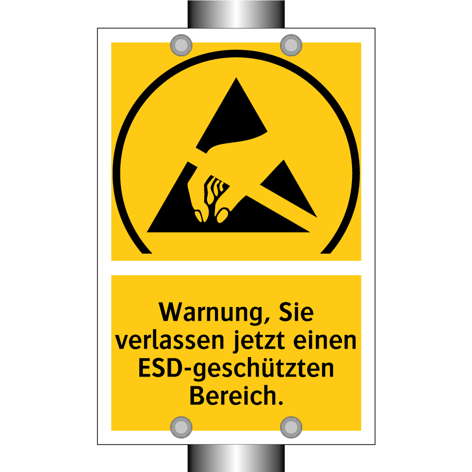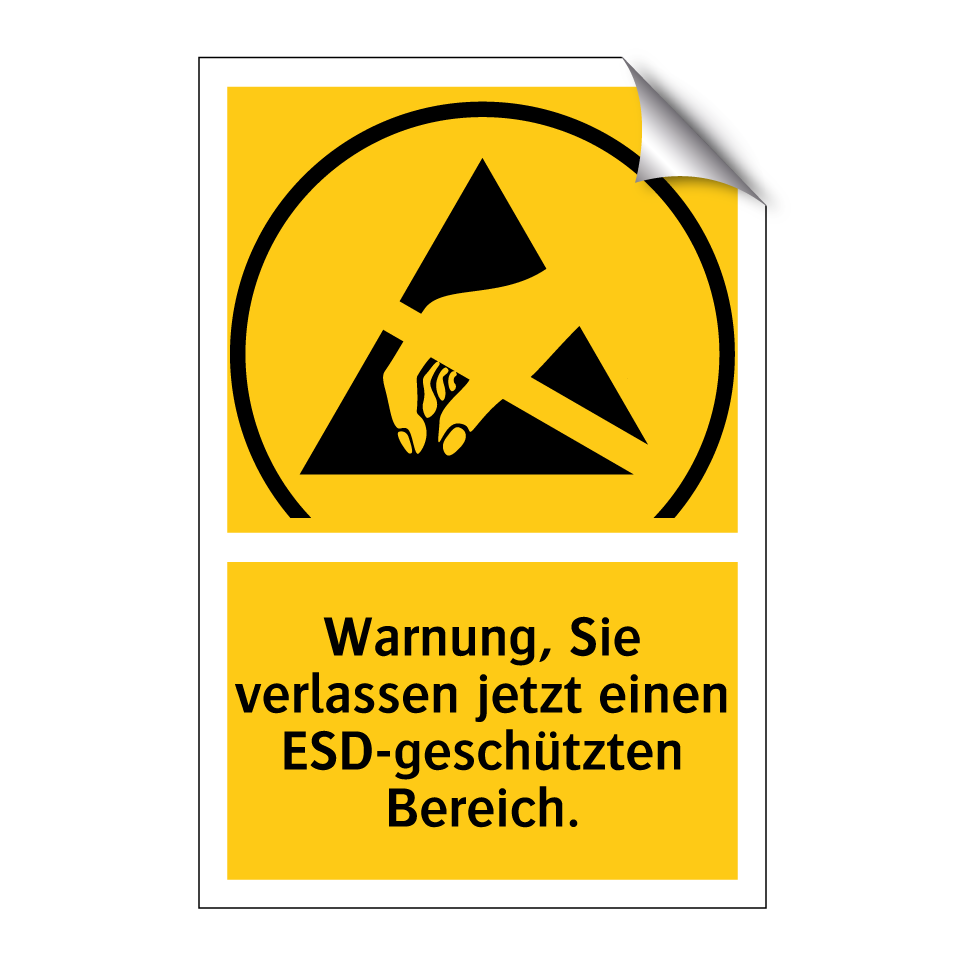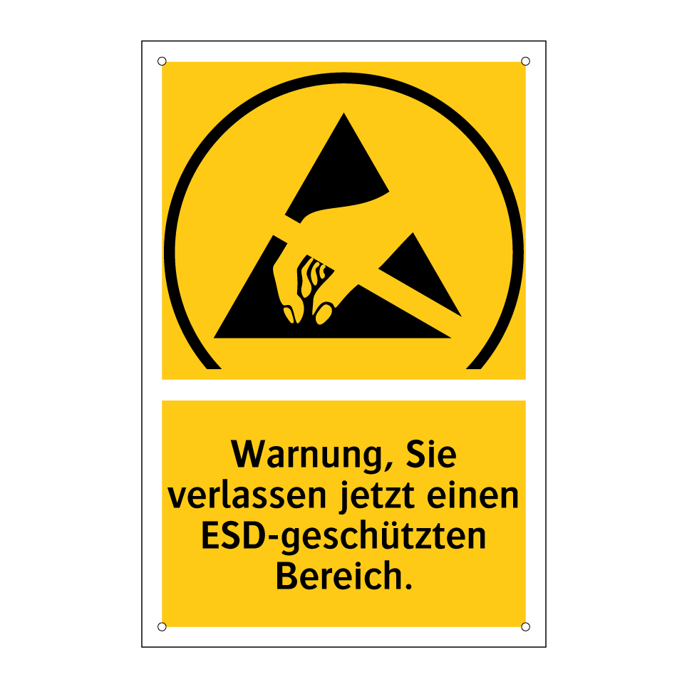 Warnschild mit dem Text Warnung, Sie verlassen jetzt einen ESD-geschützten Bereich.
