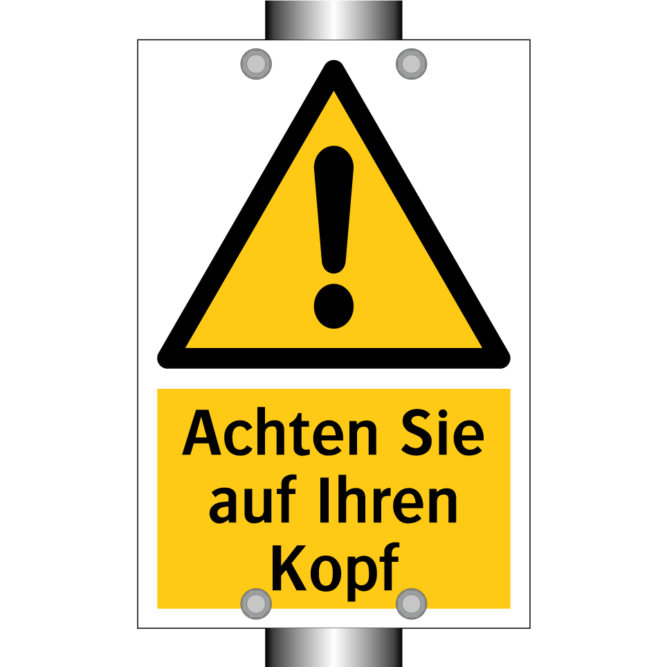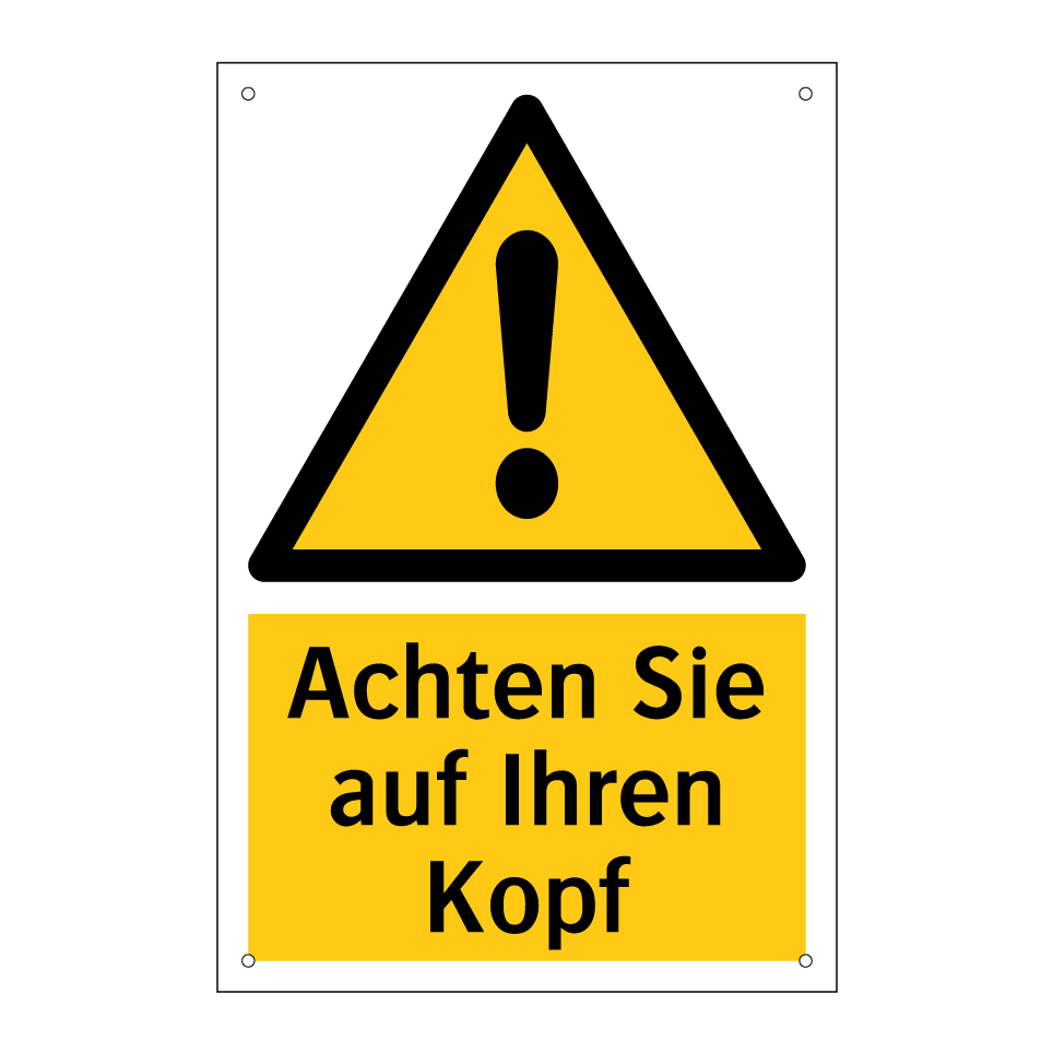 Warnschild mit dem Text Achten Sie auf Ihren Kopf