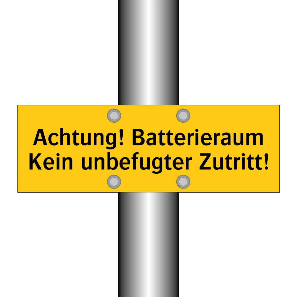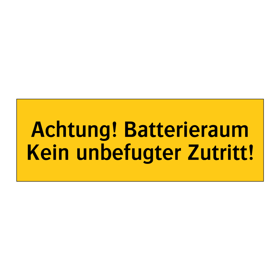 Warnschild mit dem Text Achtung! Batterieraum Kein unbefugter Zutritt!