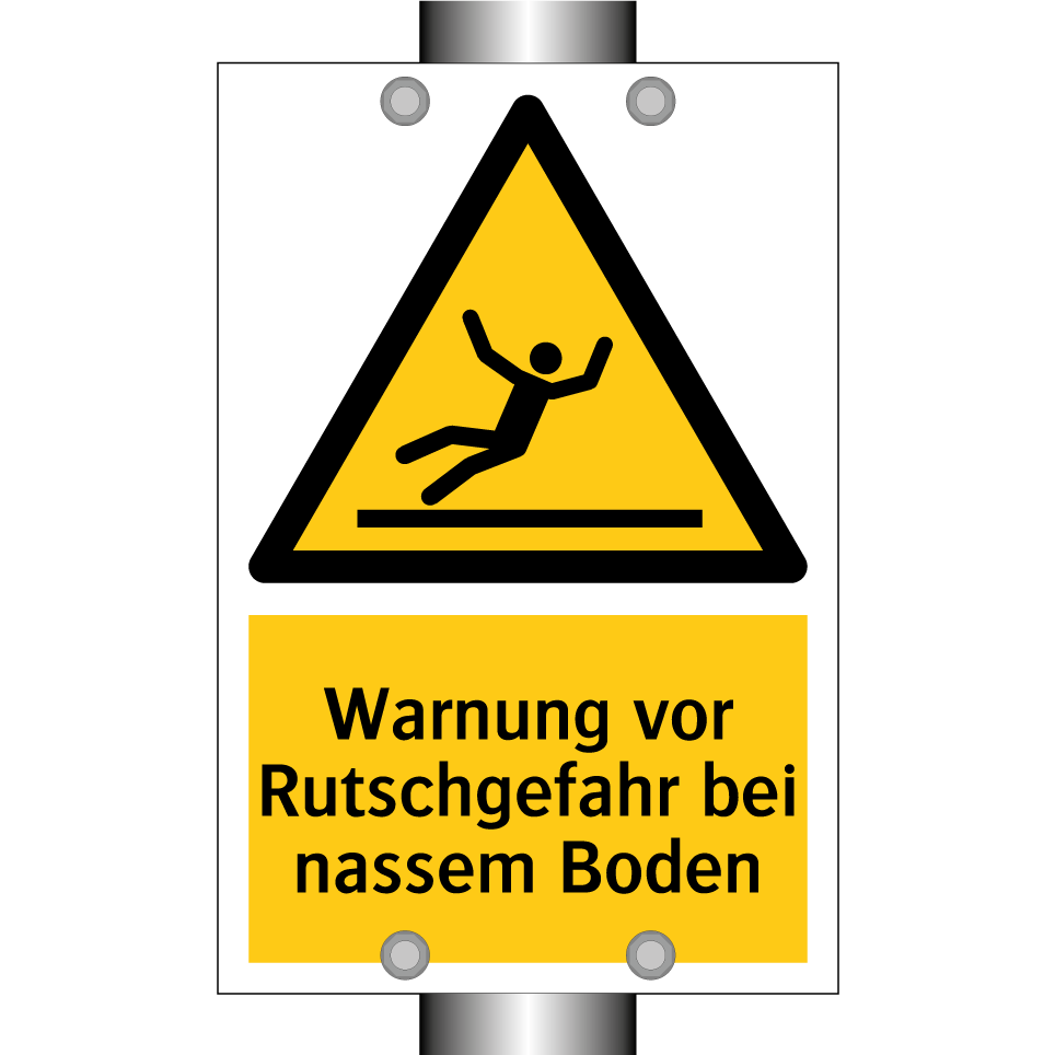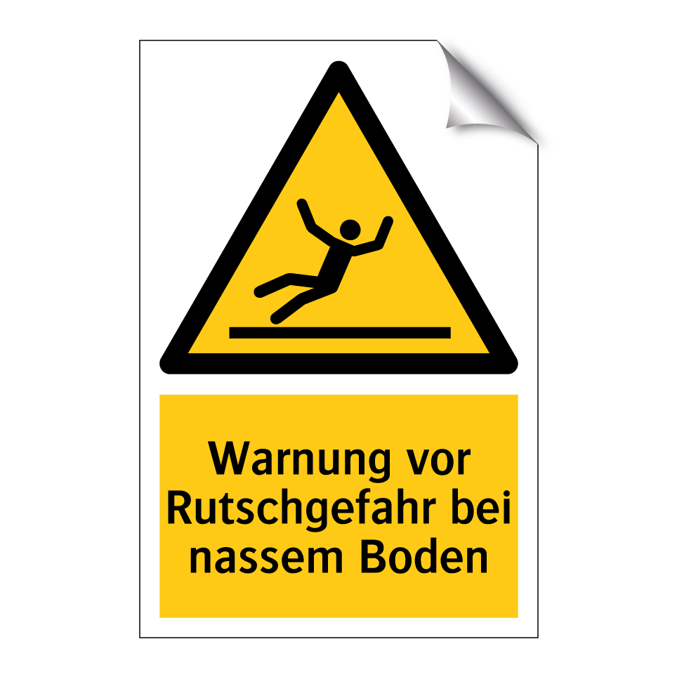 Warnschild mit dem Text Warnung vor Rutschgefahr bei nassem Boden