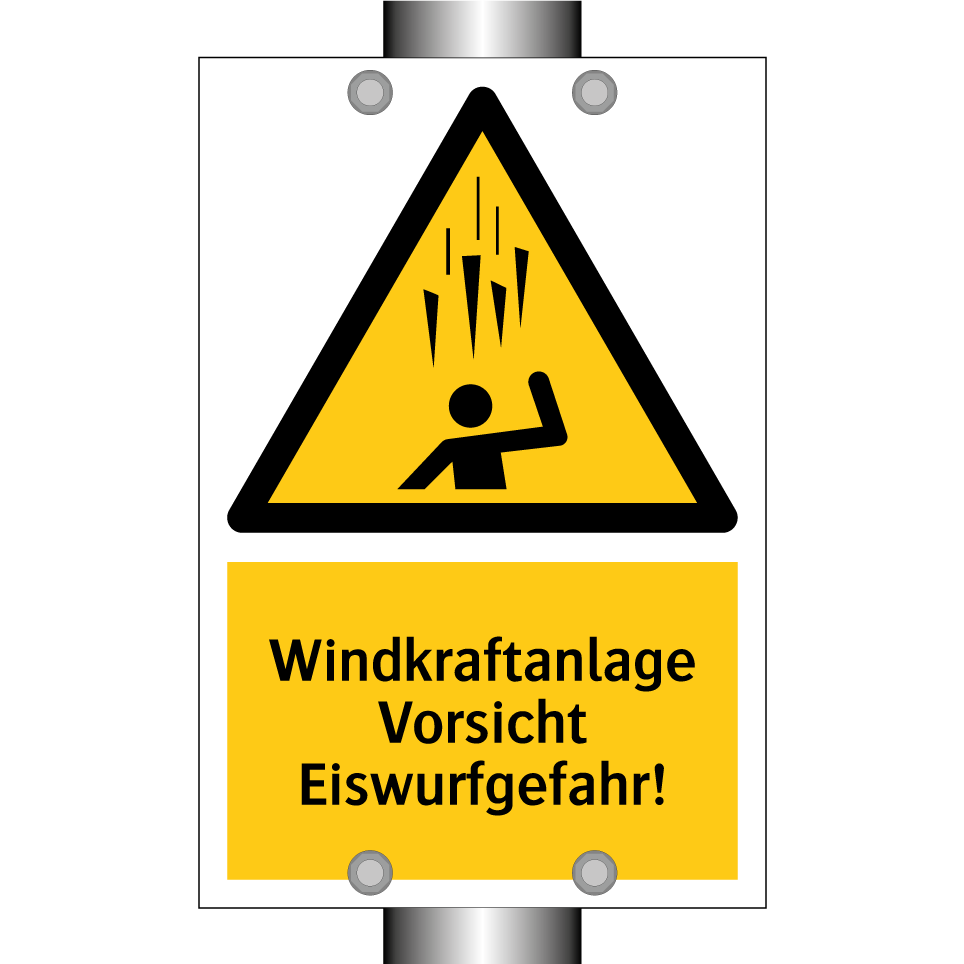 Diese auffällige Warnschild mit gelbem Hintergrund und schwarzem Text ist ideal für den Einsatz in der Nähe von Windkraftanlagen. Sie warnt effektiv vor der Gefahr von herabfallendem Eis, das von den Rotorblättern geschleudert werden kann. Platzieren Sie diese Warnschilder an gut sichtbaren Stellen, um Passanten und Arbeiter auf die potenziellen Risiken aufmerksam zu machen. Besonders geeignet ist sie für Windparks, Zufahrtsstraßen und Wartungsbereiche, wo erhöhte Vorsicht geboten ist. Durch die klare Symbolik und prägnante Botschaft sorgt die Warnschild für erhöhte Sicherheit und minimiert das Unfallrisiko in gefährdeten Zonen.