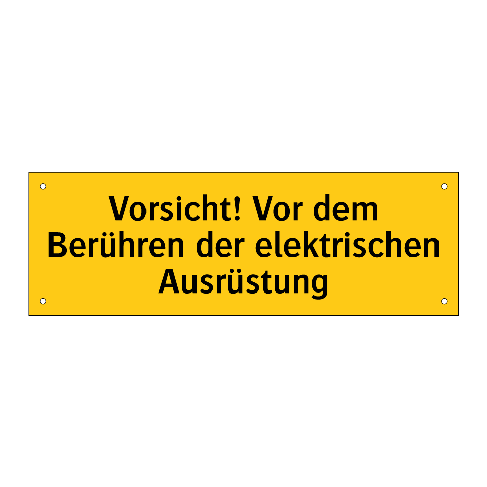 Warnschild mit dem Text Vorsicht! Vor dem Berühren der elektrischen Ausrüstung