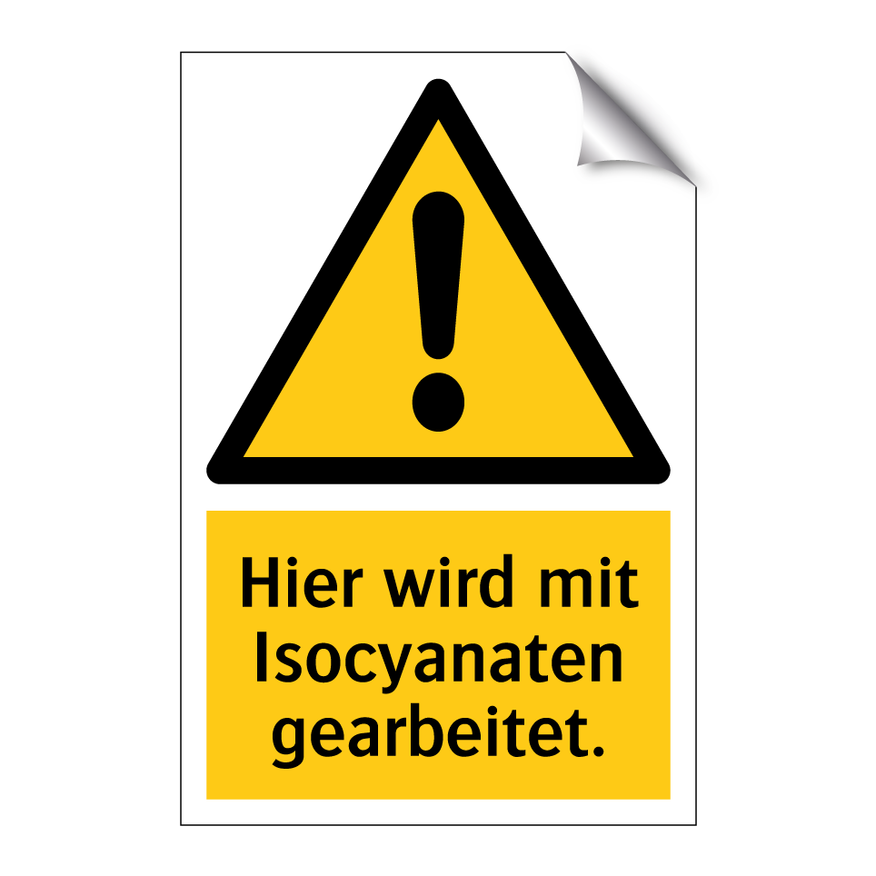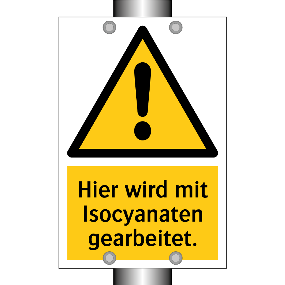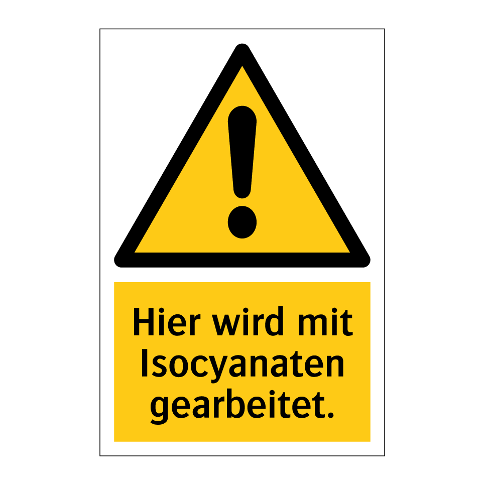 Warnschild mit dem Text Hier wird mit Isocyanaten gearbeitet.