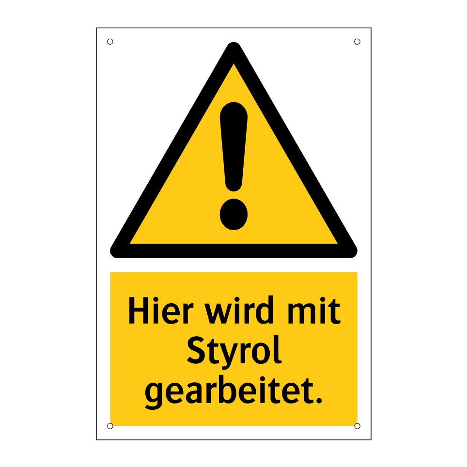 Warnschild mit dem Text Hier wird mit Styrol gearbeitet.