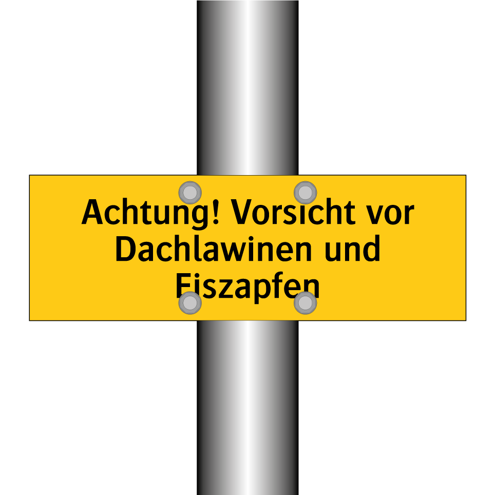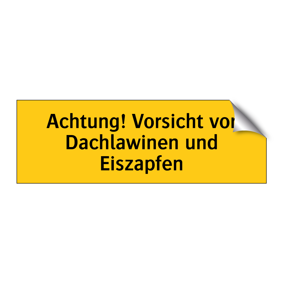 Warnschild mit dem Text Achtung! Vorsicht vor Dachlawinen und Eiszapfen
