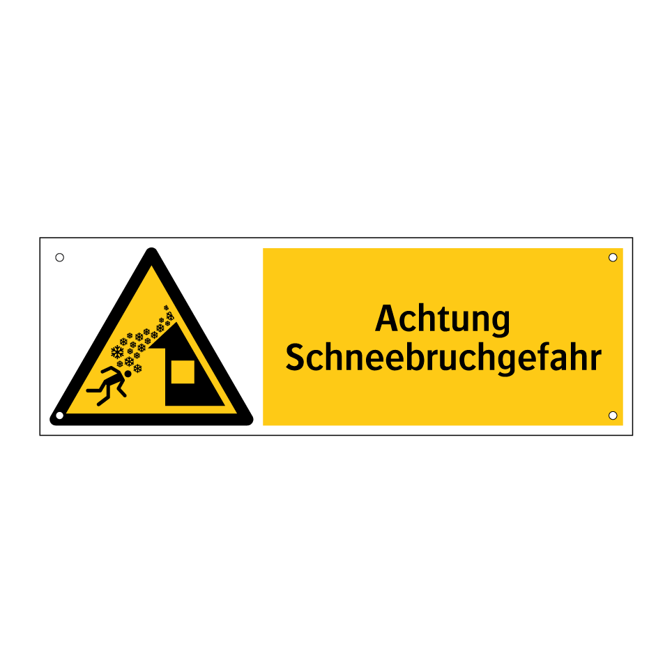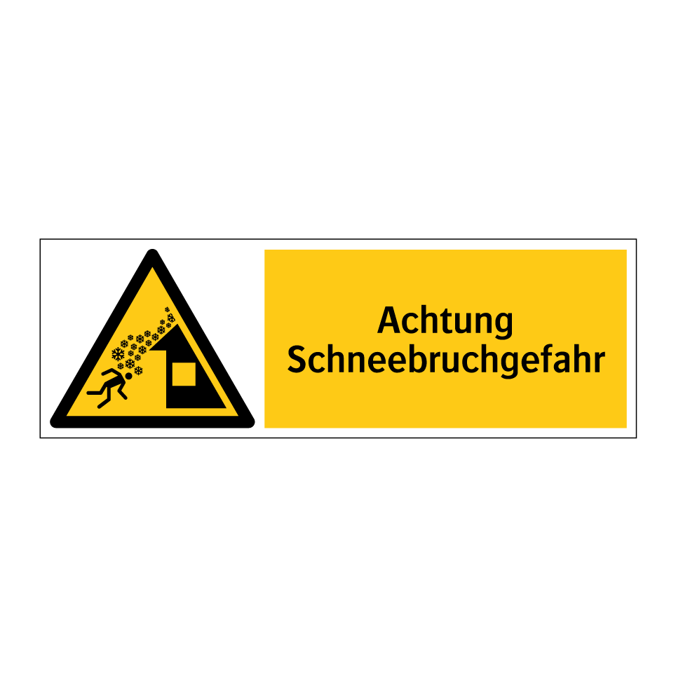 Warnschild mit dem Text Achtung Schneebruchgefahr