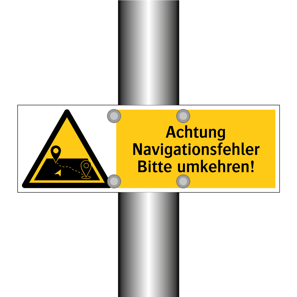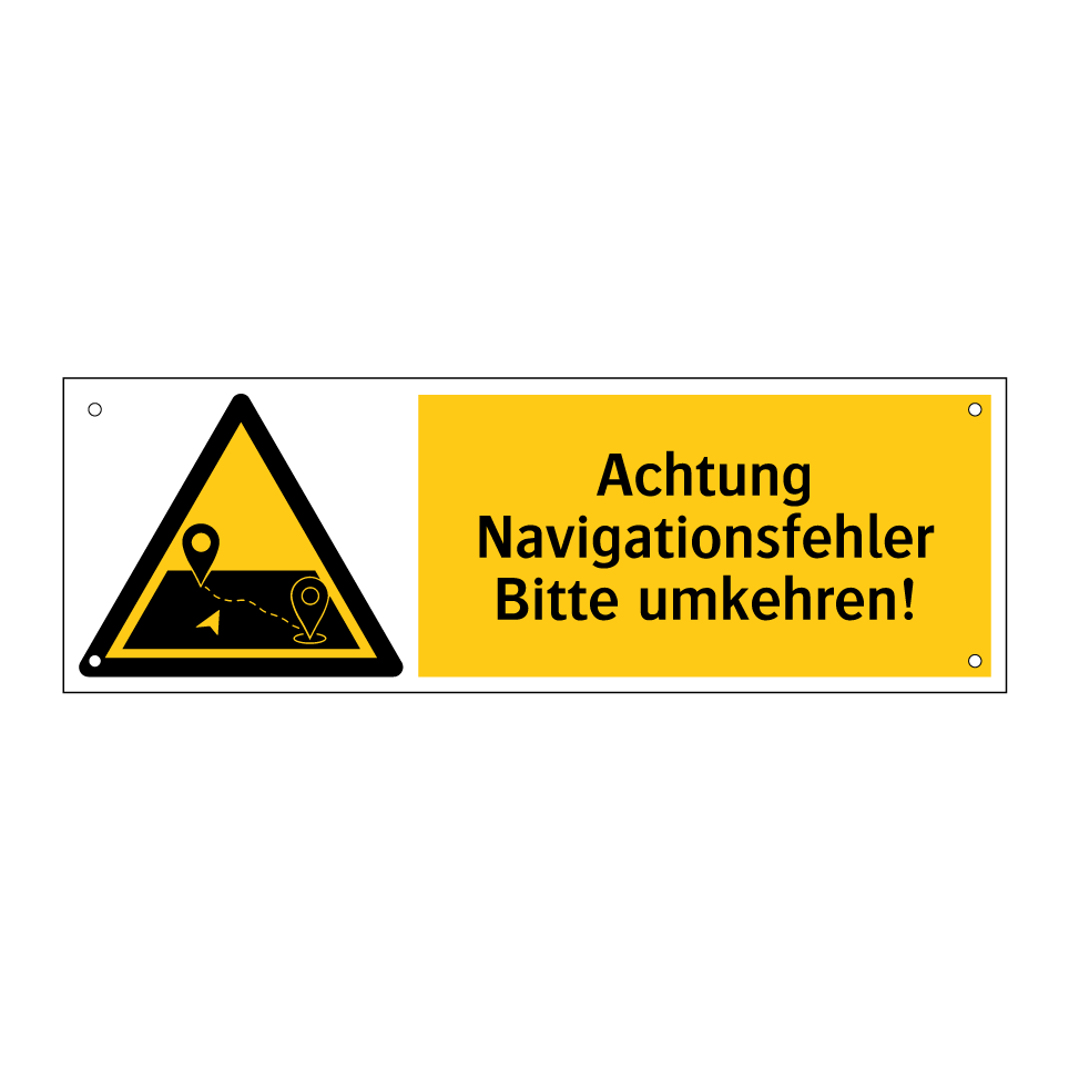 Warnschild mit dem Text Achtung Navigationsfehler Bitte umkehren!