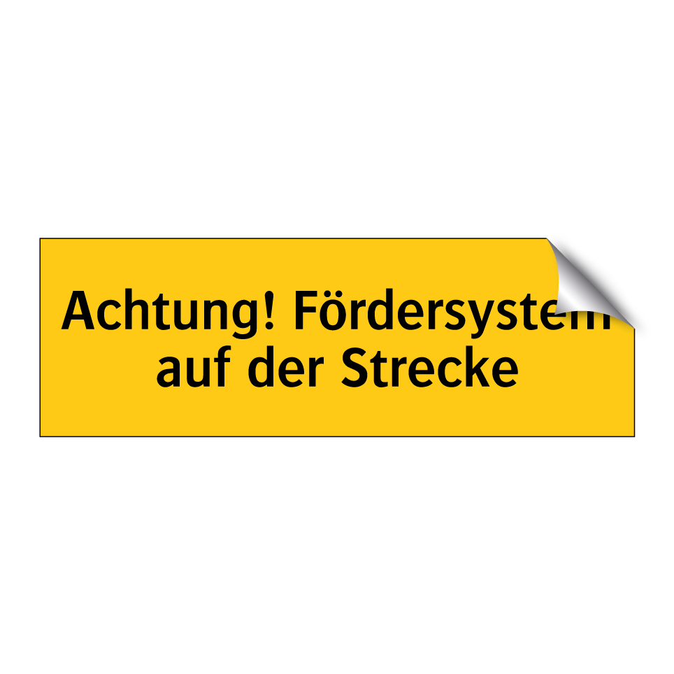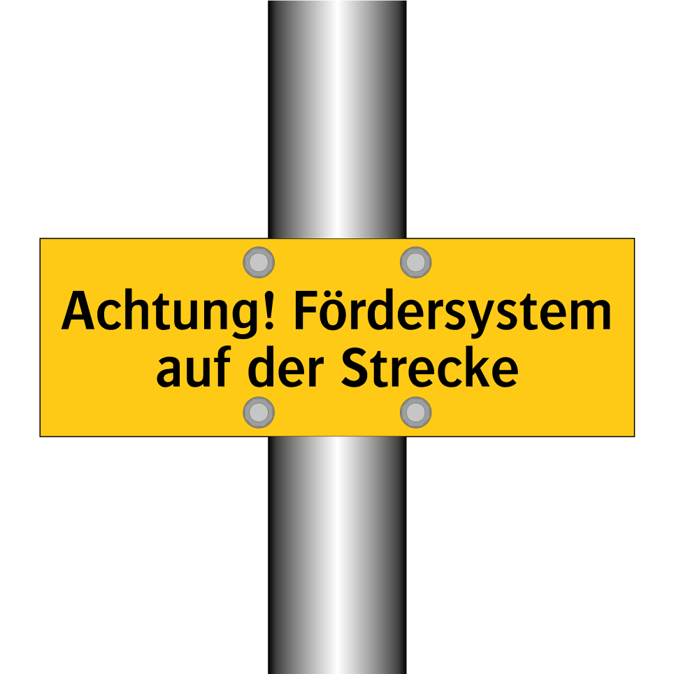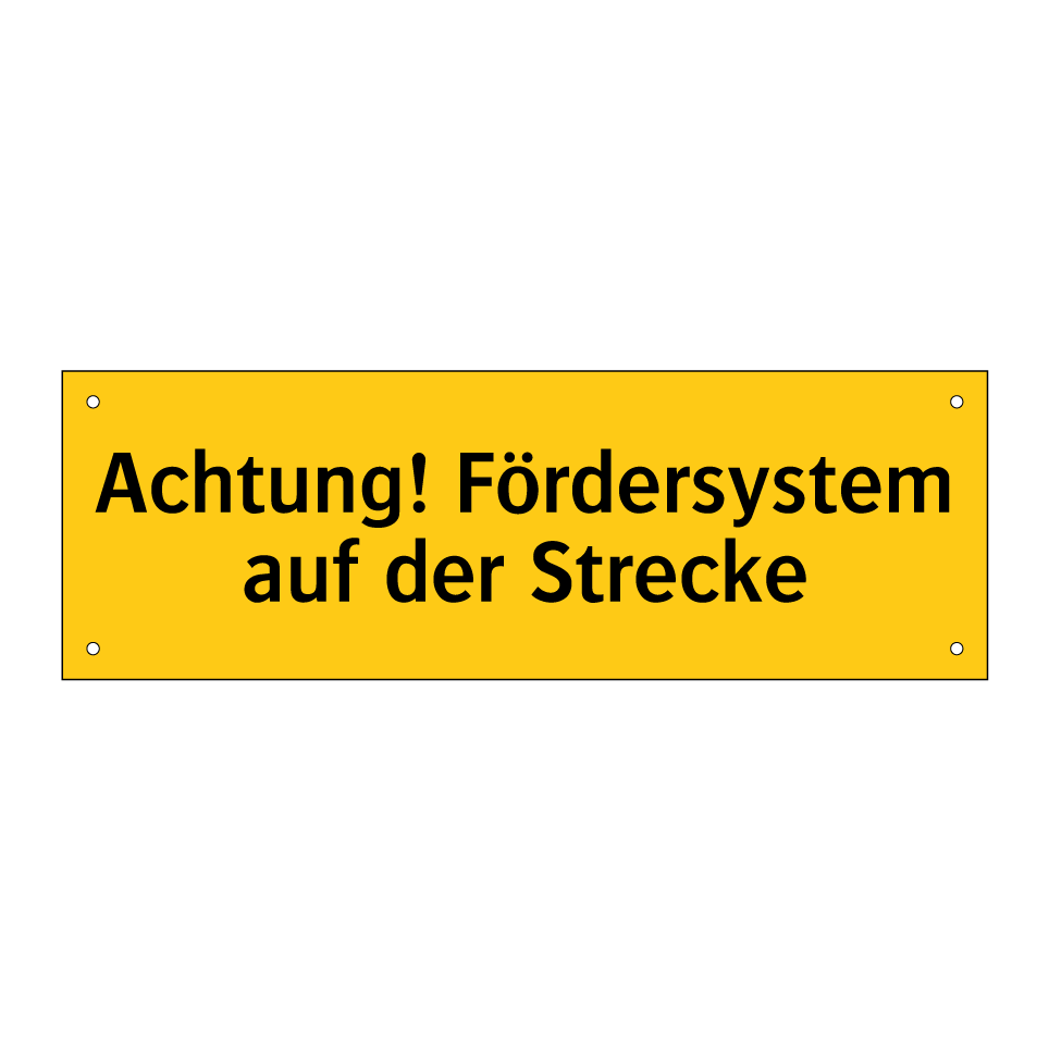 Warnschild mit dem Text Achtung! Fördersystem auf der Strecke