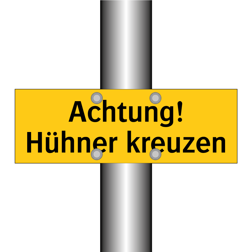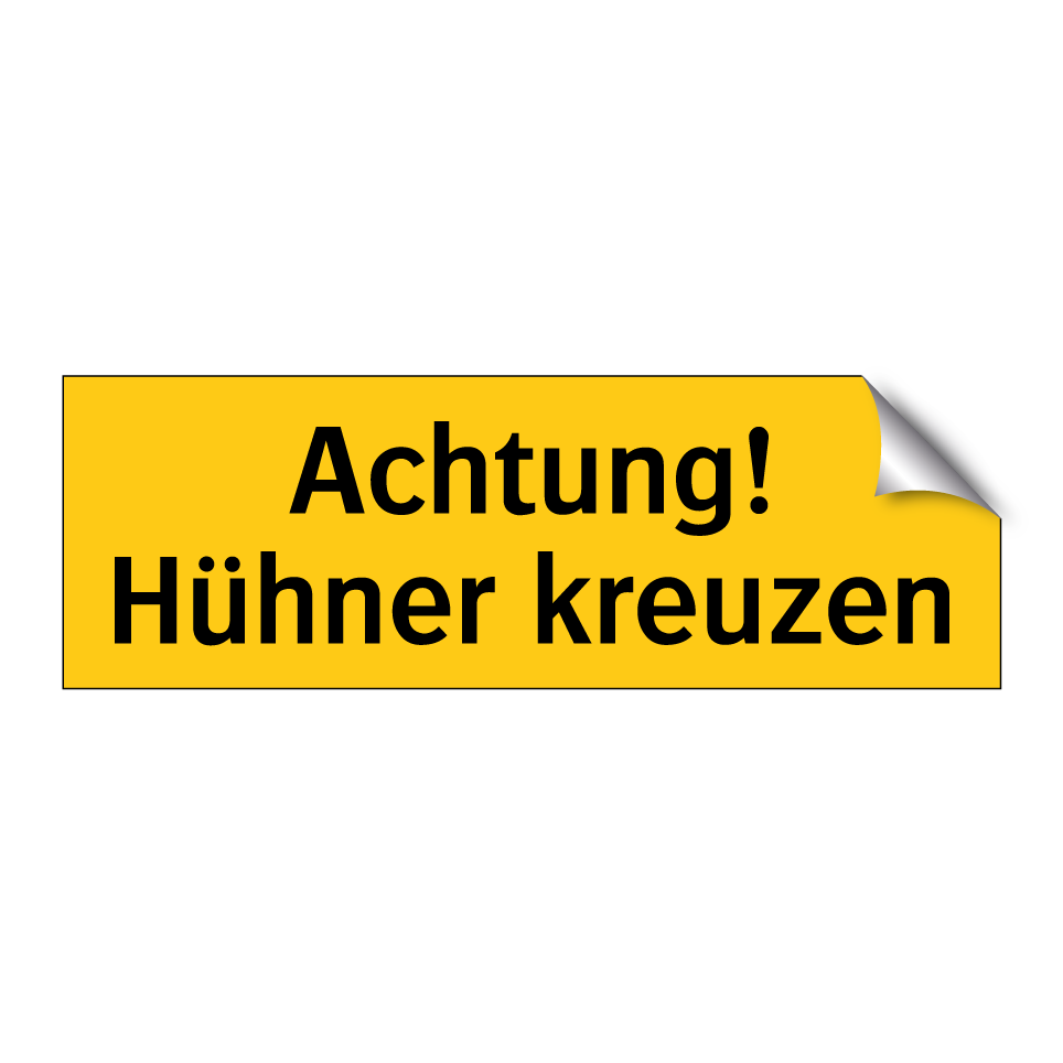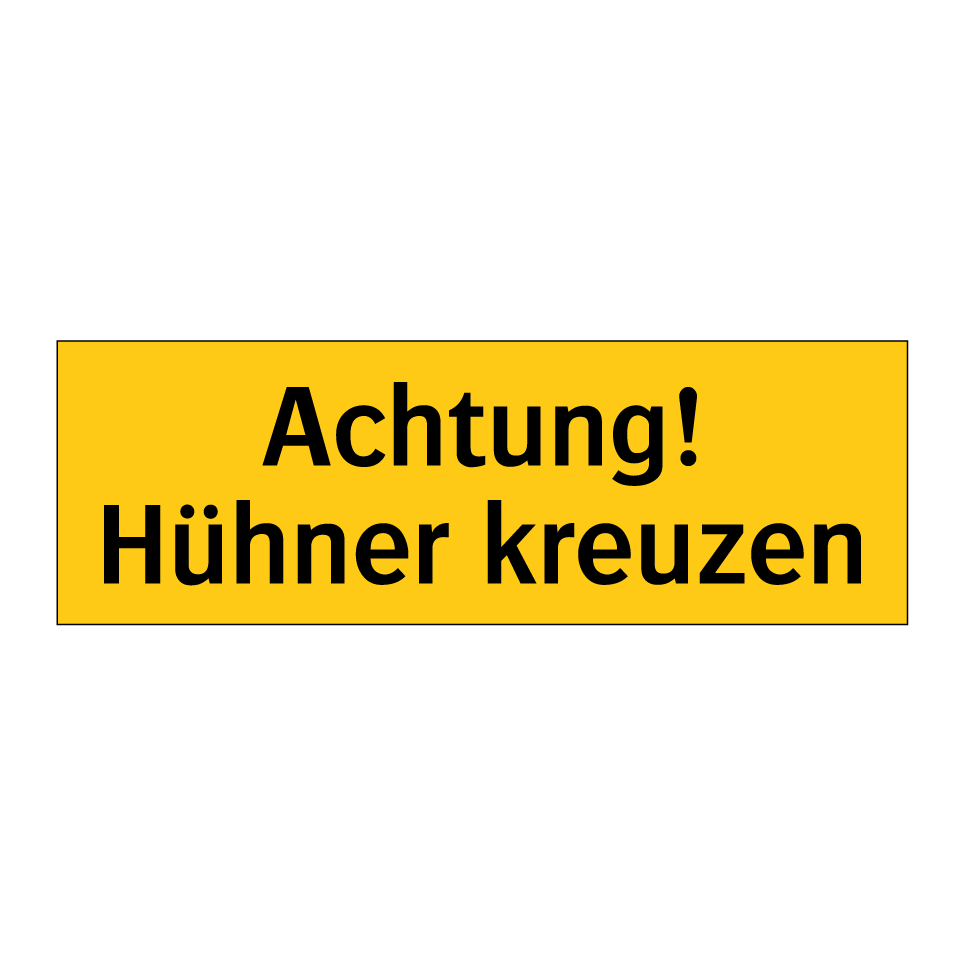 Warnschild mit dem Text Achtung! Hühner kreuzen