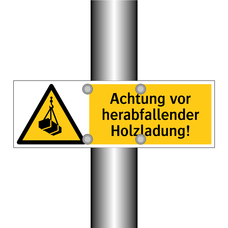 Warnschild mit dem Text Achtung vor herabfallender Holzladung!