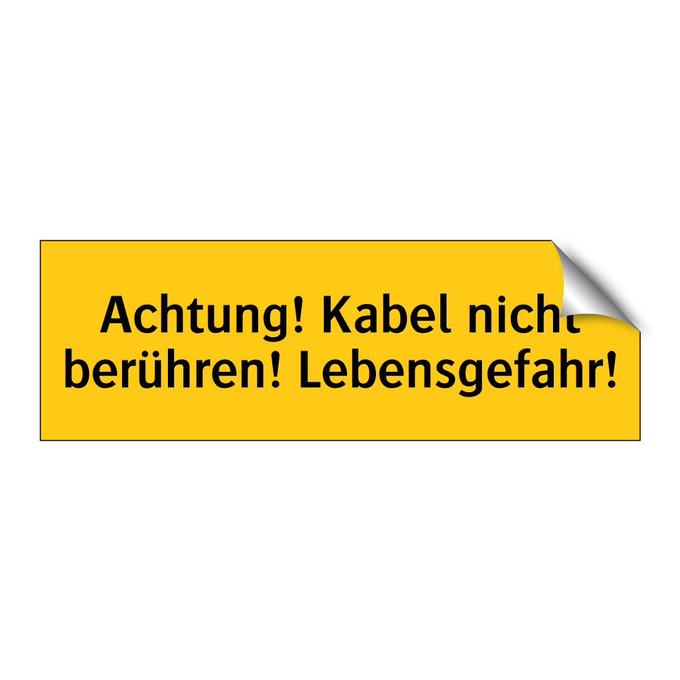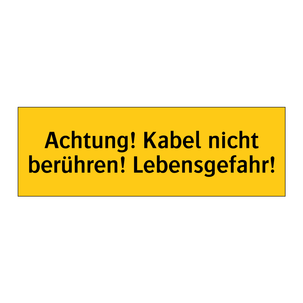 Warnschild mit dem Text Achtung! Kabel nicht berühren! Lebensgefahr!