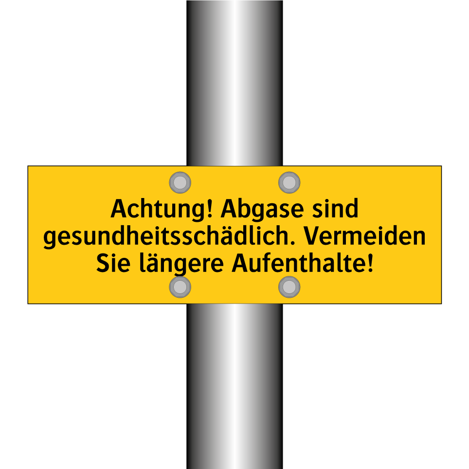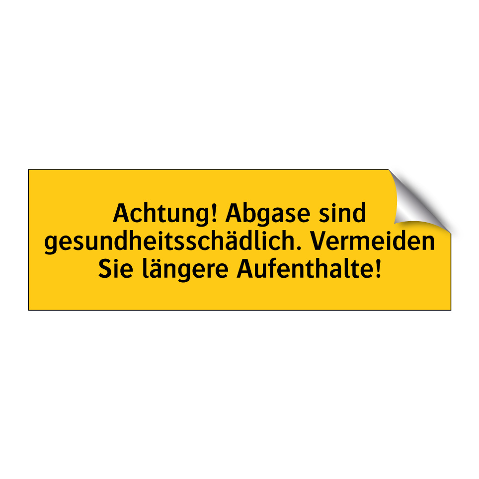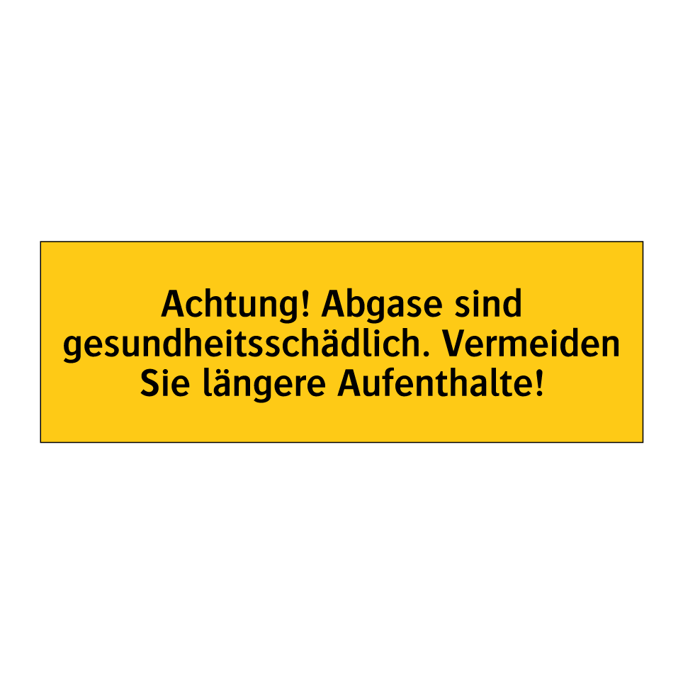 Warnschild mit dem Text Achtung! Abgase sind gesundheitsschädlich. Vermeiden Sie längere Aufenthalte!