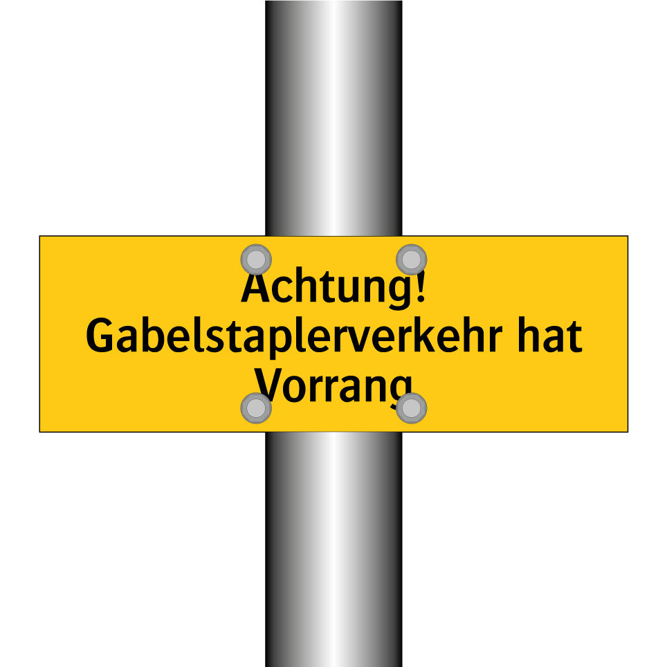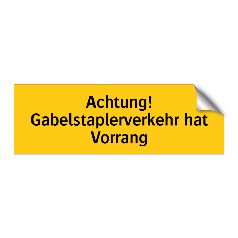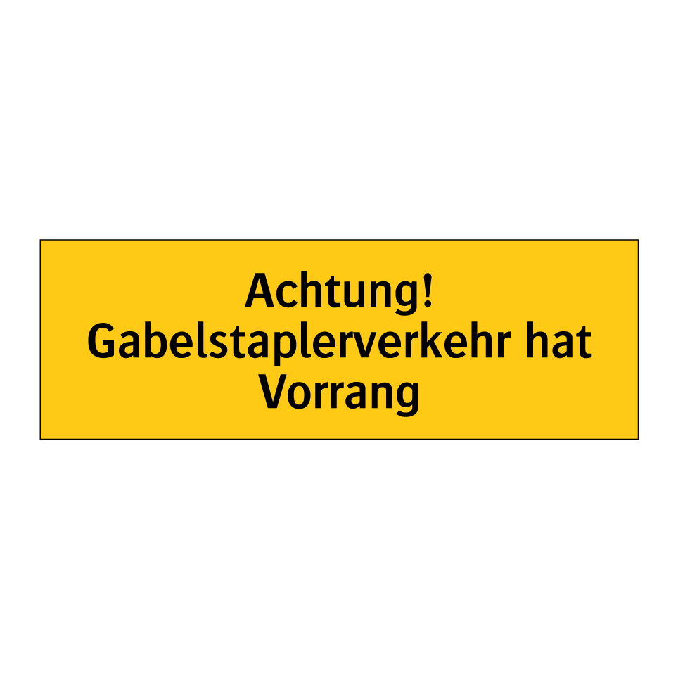 Warnschild mit dem Text Achtung! Gabelstaplerverkehr hat Vorrang