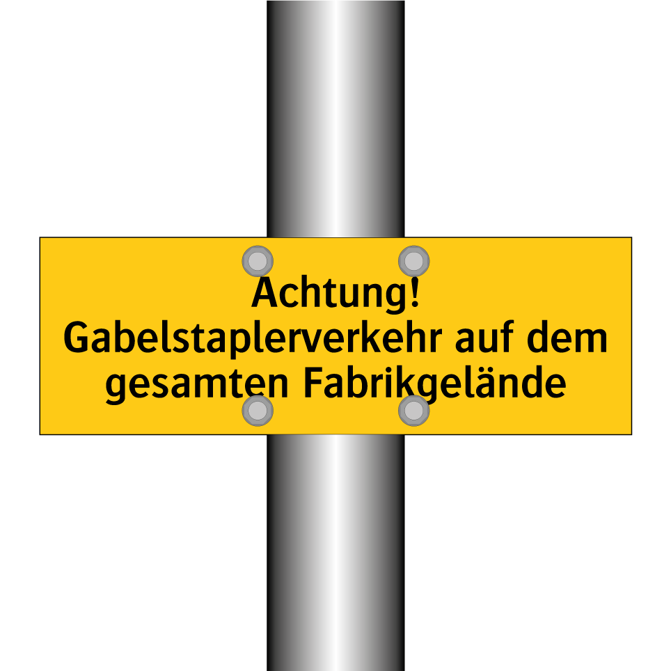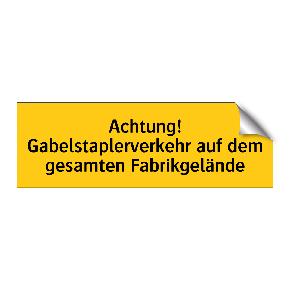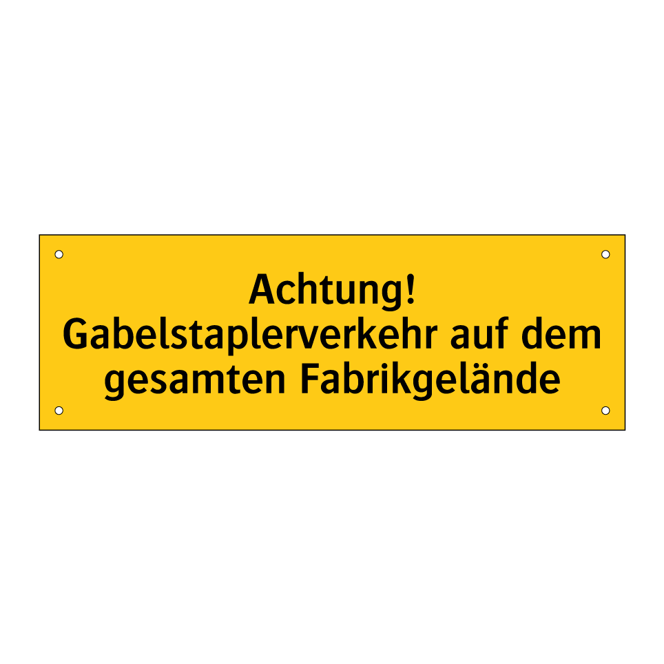 Warnschild mit dem Text Achtung! Gabelstaplerverkehr auf dem gesamten Fabrikgelände