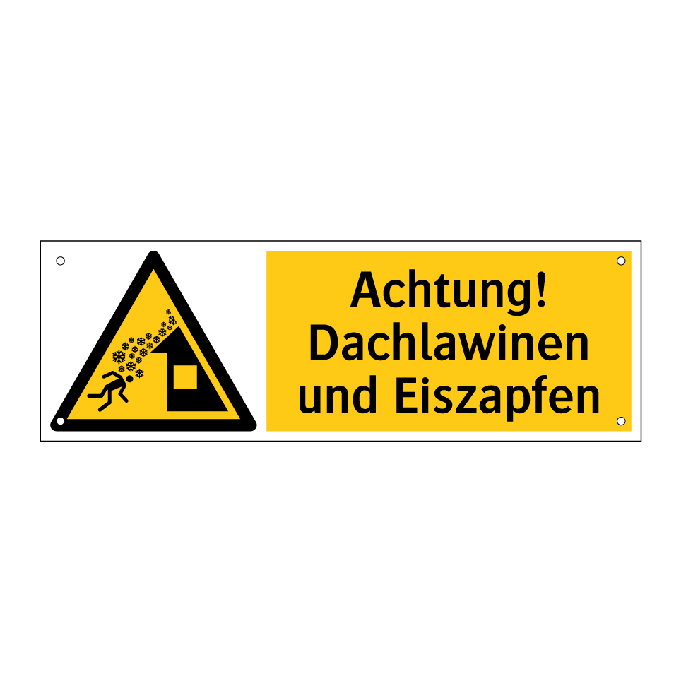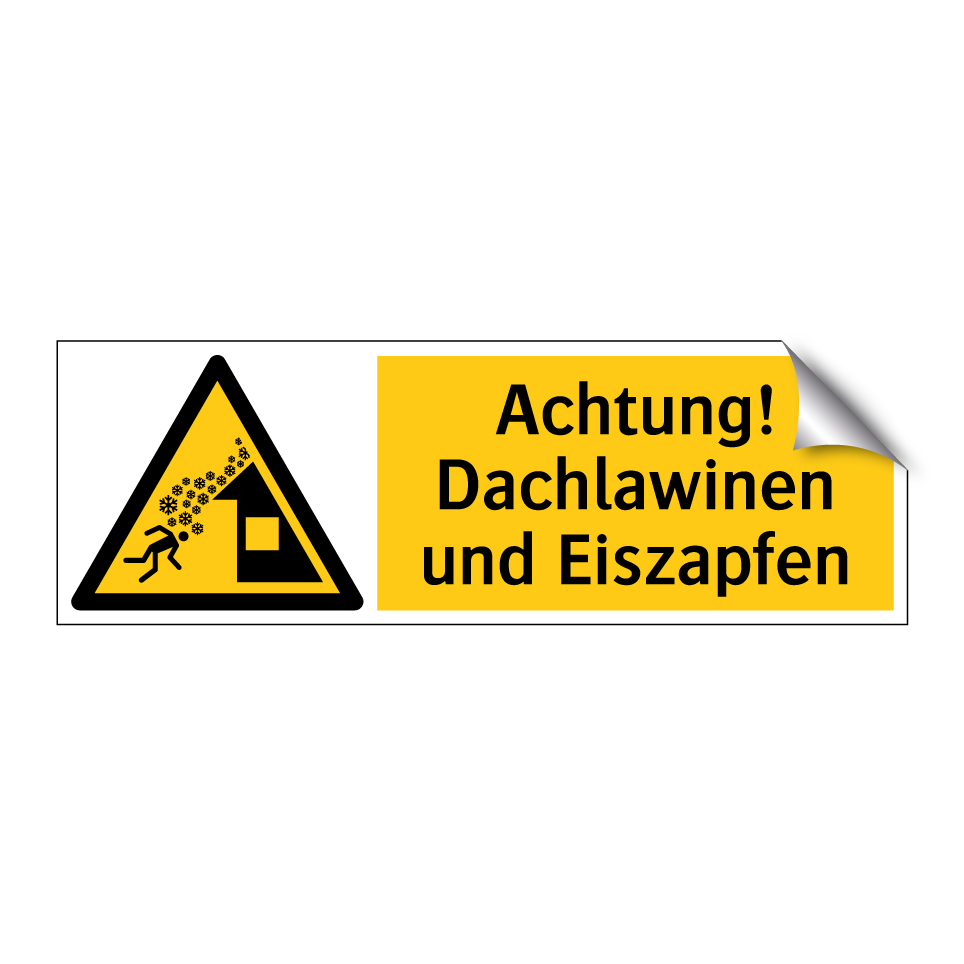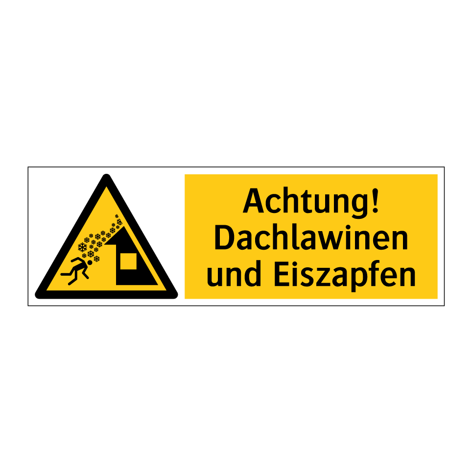 Warnschild mit dem Text Achtung! Dachlawinen und Eiszapfen
