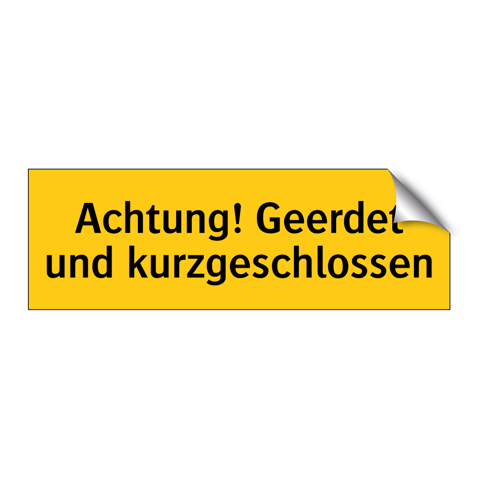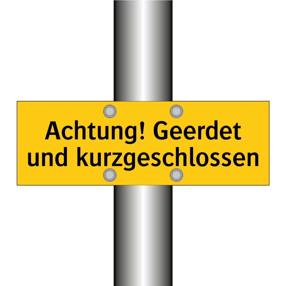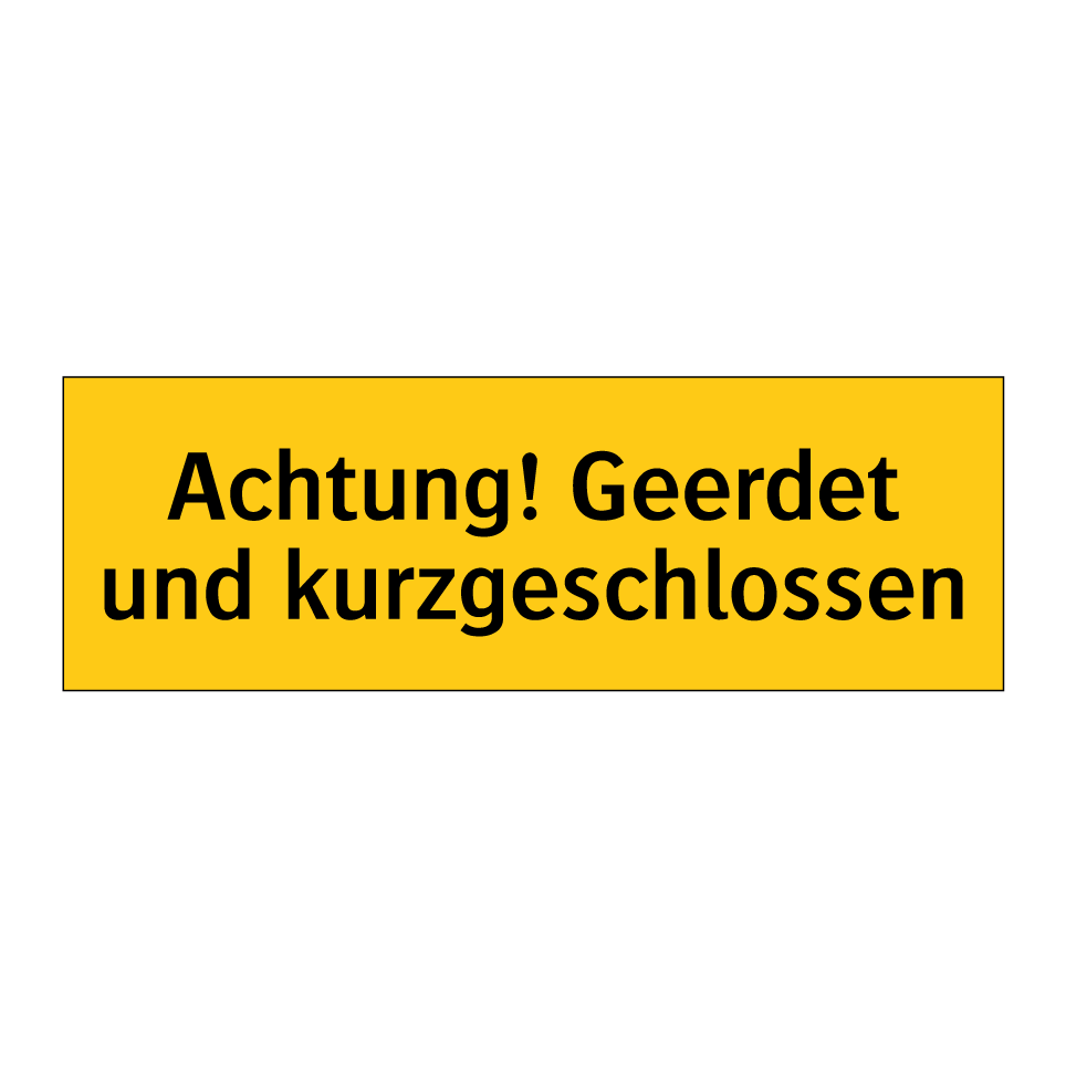 Warnschild mit dem Text Achtung! Geerdet und kurzgeschlossen